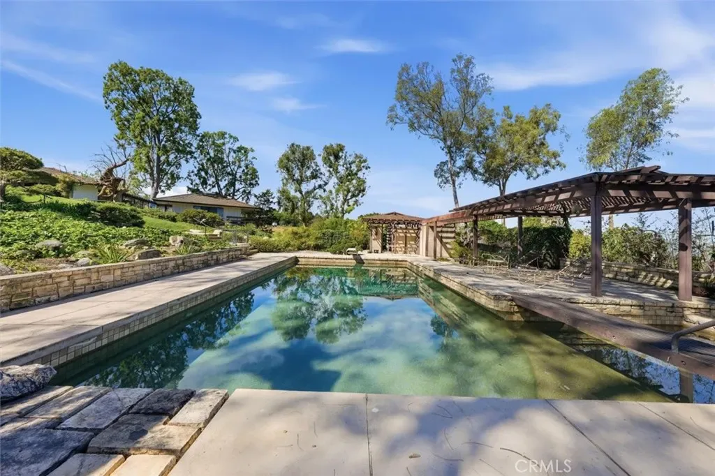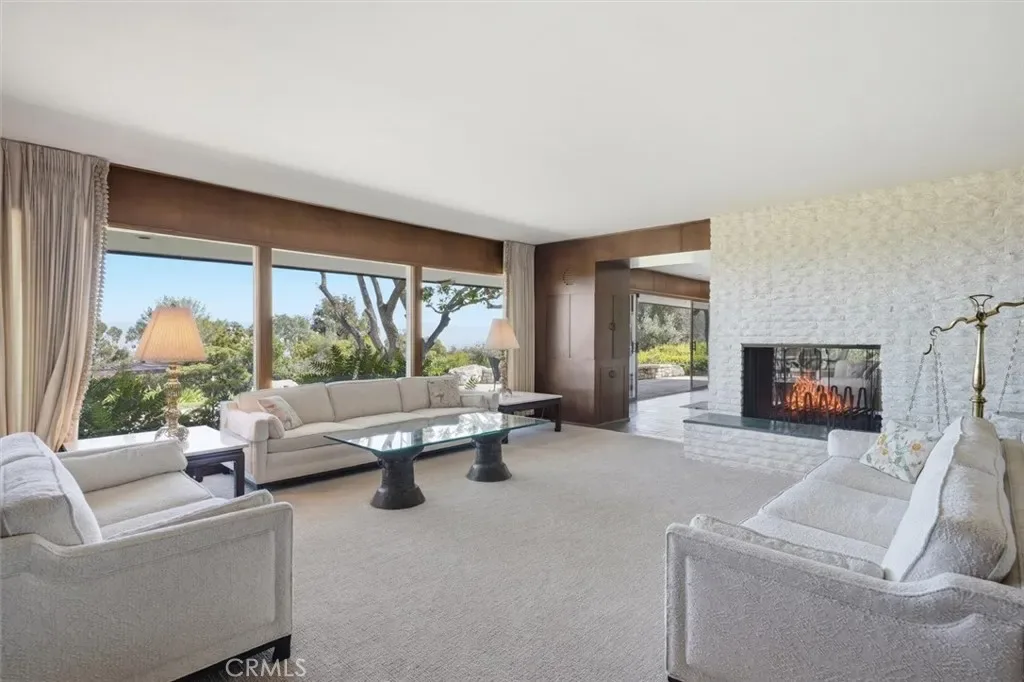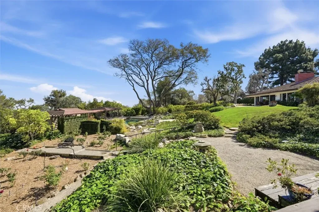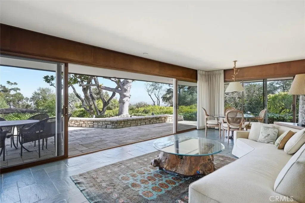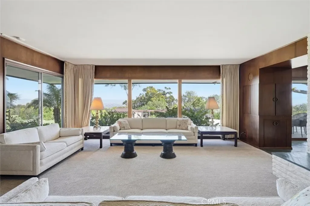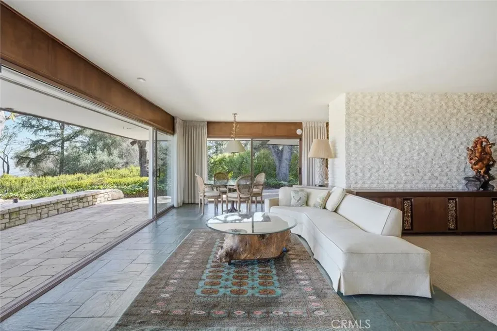 This extraordinary classic mid-century home, situated at the crest of 4.3 acres, is one of the truly great estate properties in Rolling Hills. Sweeping vistas framed by beautiful trees provide both spectacular views and a sense of privacy while radiating the spirit of effortless indoor-outdoor California luxury living.The property evokes the glamour of a bygone era the moment you arrive. Walls of glass frame breathtaking views and open seamlessly to expansive patios, creating a spectacular flow between interior spaces and the outdoors. The residence was designed with entertaining in mind. Generous living spaces spill out to beautiful terraces and a resort-style pool area, offering an unforgettable setting for gatherings both intimate and grand. For years, this property and its generous owners hosted magnificent fundraising events for local charities, welcoming hundreds of guests with elegance and ease. The estate grounds are equally impressive. The 4.3 acres of largely usable land include a separate two-bedroom guest house, a large two-story barn, ample space for equestrian pursuits or the creation of additional outdoor amenities, and a charming children’s cottage. Look carefully, and you will find a 1950’s bomb shelter that could serve as a unique wine cellar. With its rare combination of architectural significance, breathtaking views, usable acreage, equestrian facilities, and legendary entertaining spaces, 100 Saddleback stands as one of the landmark estates in Rolling Hills—a property that embodies the timeless glamour and lifestyle for which the Palos Verdes Peninsula is known.