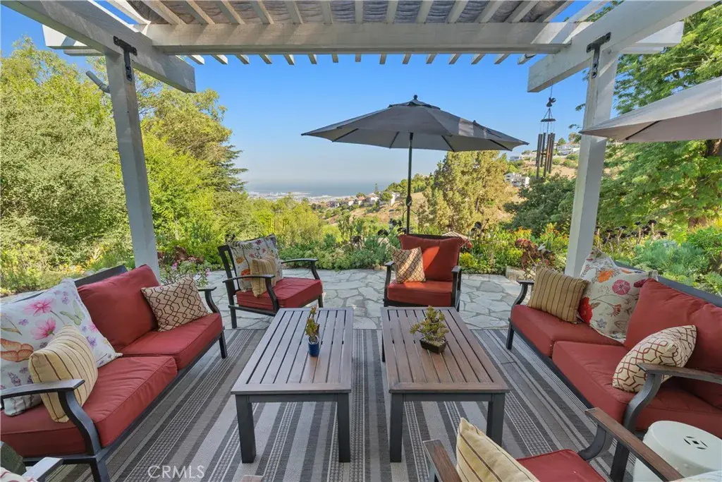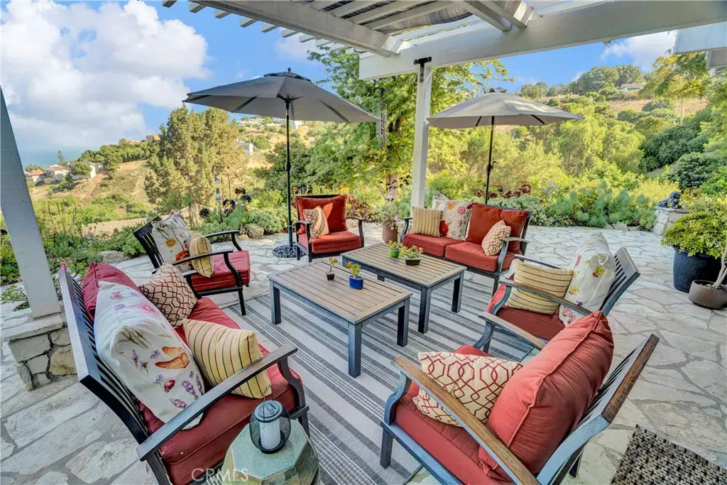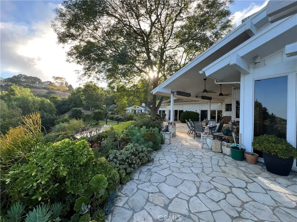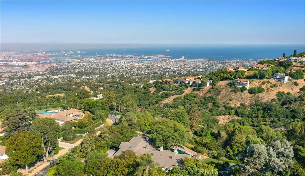 Modern Ranch Home Built in 1999 by the current owners from the ground up. This home has all of the space and amenities anyone could want! With privacy and views of the Harbor Breakwater and Ocean, Long Beach City Lights and Coastline to the south, one will see glorious sunrises. With 1.7 acres of usable land, this home features a private guest house (fully equipped with a cozy fireplace, separate bedroom, bathroom and laundry), bocce ball court, swimming pool with spa, gardens and paths, orchard and grassy yard and the potential to build a barn. With over 6000 sgft of outside patios and porches that overlook the views and grounds, visitors are drawn outside through large glass walls of windows, to enjoy the serenity of mature trees and landscaping. Enter into the home through a covered veranda and you are greeted with warm wood flooring and wood ceilings with a neutral color palette that were inspired by a love of Big Sur. Inside you will find gracious open entertaining spaces with large stone fireplaces. The kitchen is in the heart of the home and accesses both the Living, Dining and Family rooms (with a wet bar and pool table). There is a large library with walls of woodwork shelves and a fireplace to relax in front of and read. The primary bedroom overlooks the views and is ensuite to a large bathroom featuring his and hers closets, dual vanities, soaking tub and skylights. Down a hand crafted spiral staircase, there is a finished basement ready to customize a wine room and media room. Enjoy the existing mirrored dance or exercise room which is ready to go. There is also a large bathroom that leads out to the spa and pool. There is a workshop next to the oversized three car garages. Community schools are excellent and within the Equestrian inspired City of Rolling Hills are 26 miles of trails, two riding rings and tennis and pickleball courts. With 3 separate 24/7 attended gates, Rolling Hills offers less traffic while enjoying incredible views and a rural lifestyle. Easy access to all other Southbay and Los Angeles cities for dining and beaches. The Palos Verdes Peninsula also offers local shopping and dining options and incredible parks and vistas from them all!