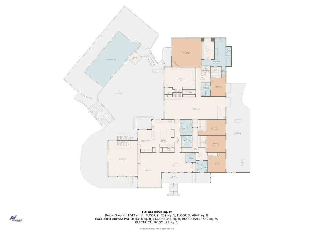 2 Full Bathrooms, 3 Three Quarter Bathrooms, 1 Half Bathroom