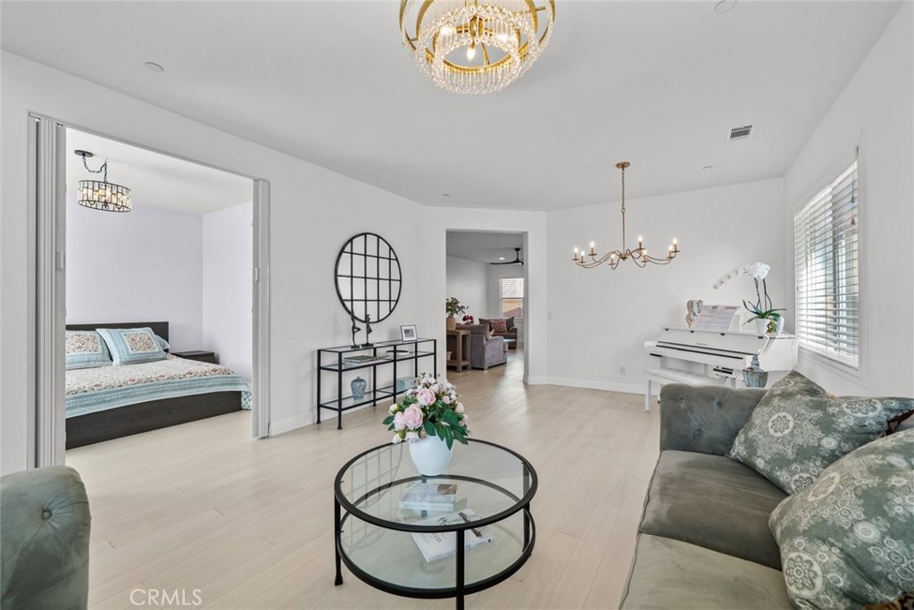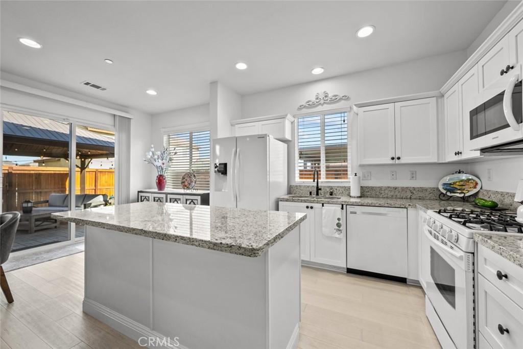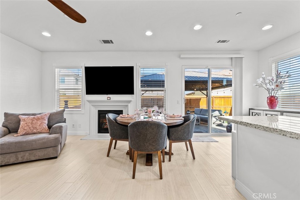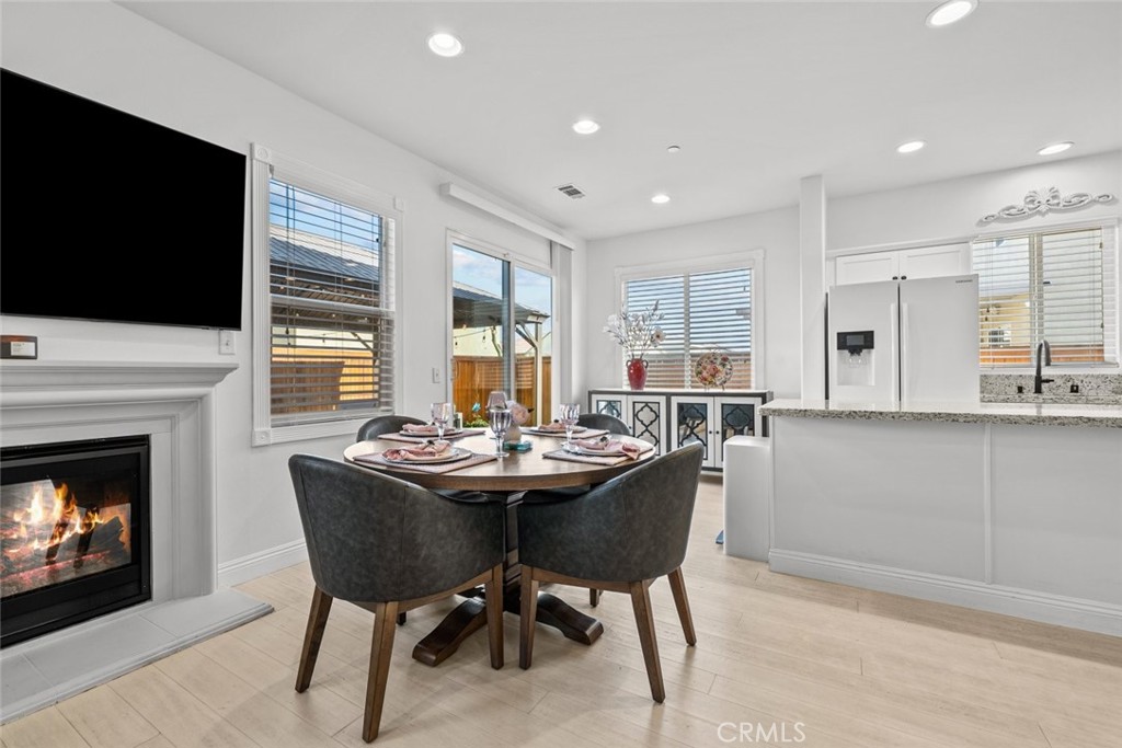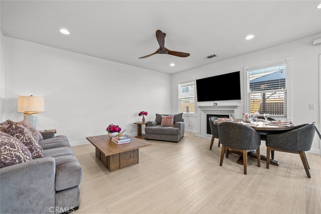This well-maintained residence features an open and airy layout with recessed lighting, white paint throughout, and bamboo flooring flowing seamlessly through the home. The kitchen offers a functional island ideal for everyday living and entertaining, while the living room is highlighted by a cozy fireplace. The property features bamboo flooring throughout the house and many upgrades.
