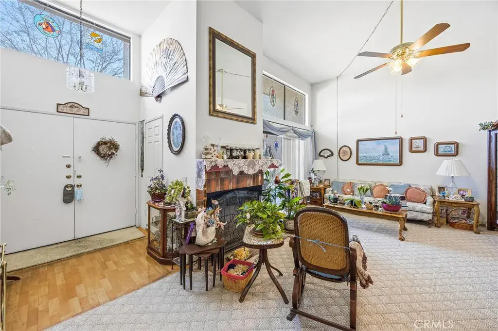 The first floor offers a welcoming living room with a cozy fireplace—perfect for relaxing evenings—along with direct access to a private patio, ideal for morning coffee or outdoor enjoyment.