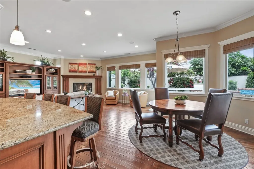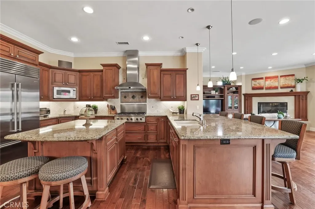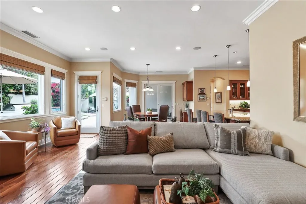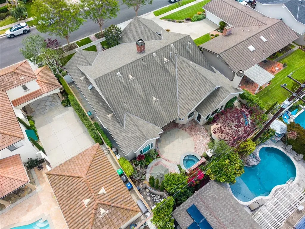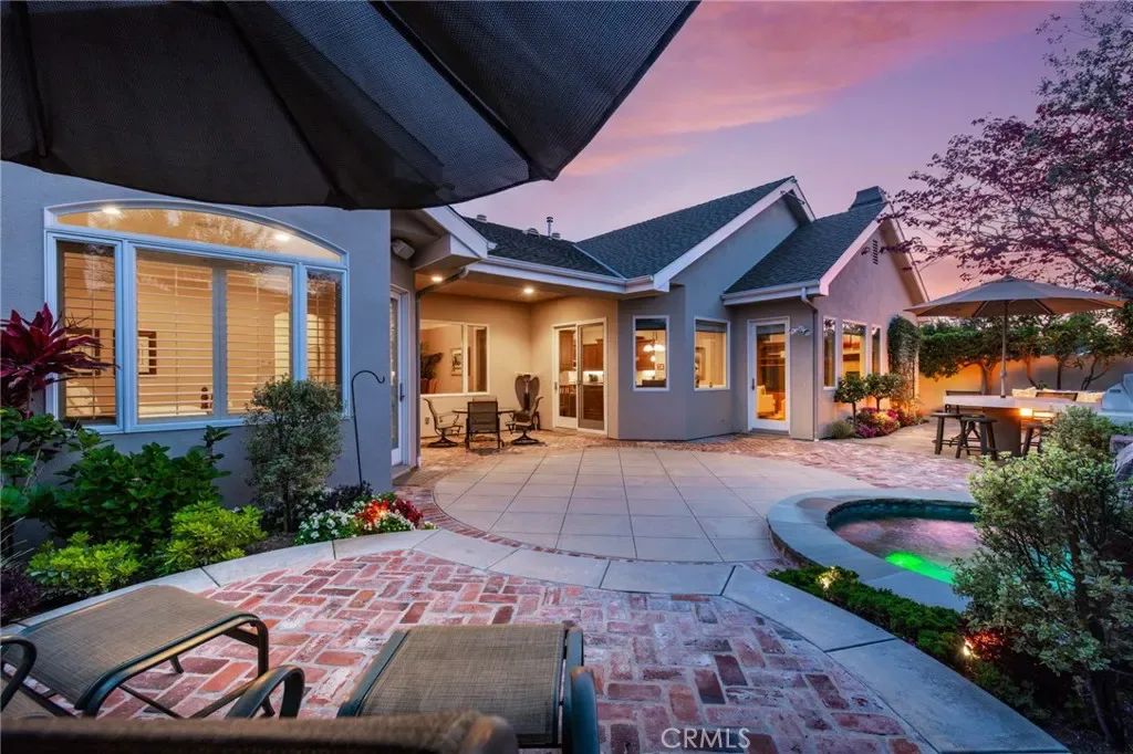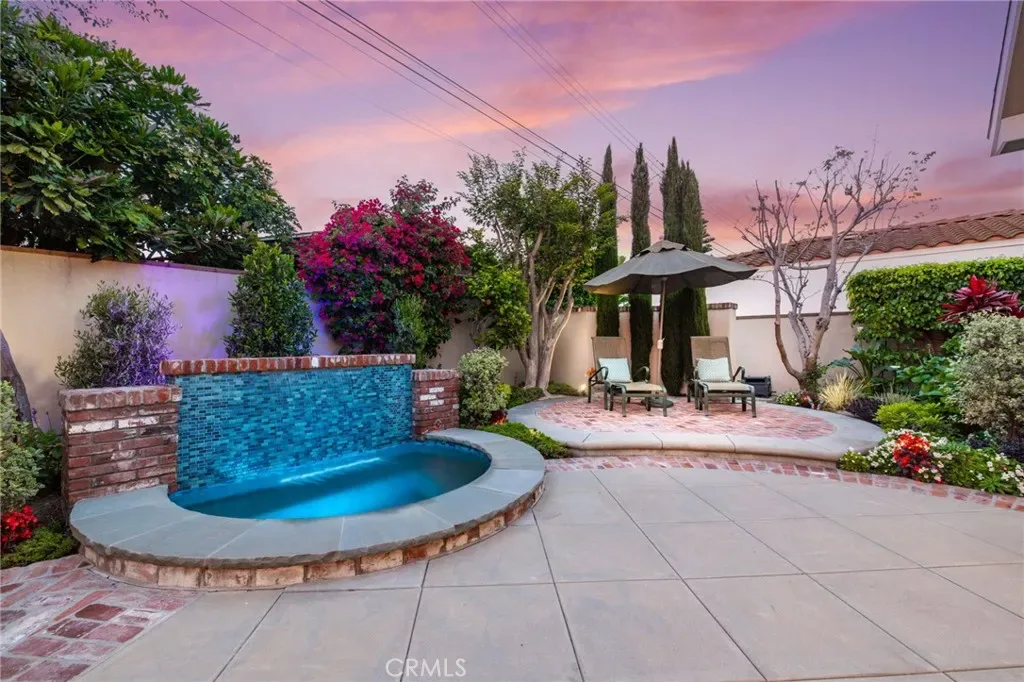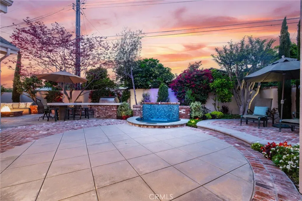 Step outside to a private backyard oasis designed for quintessential Southern California living, complete with custom hardscape, built-in BBQ, spa, and lush, mature landscaping.