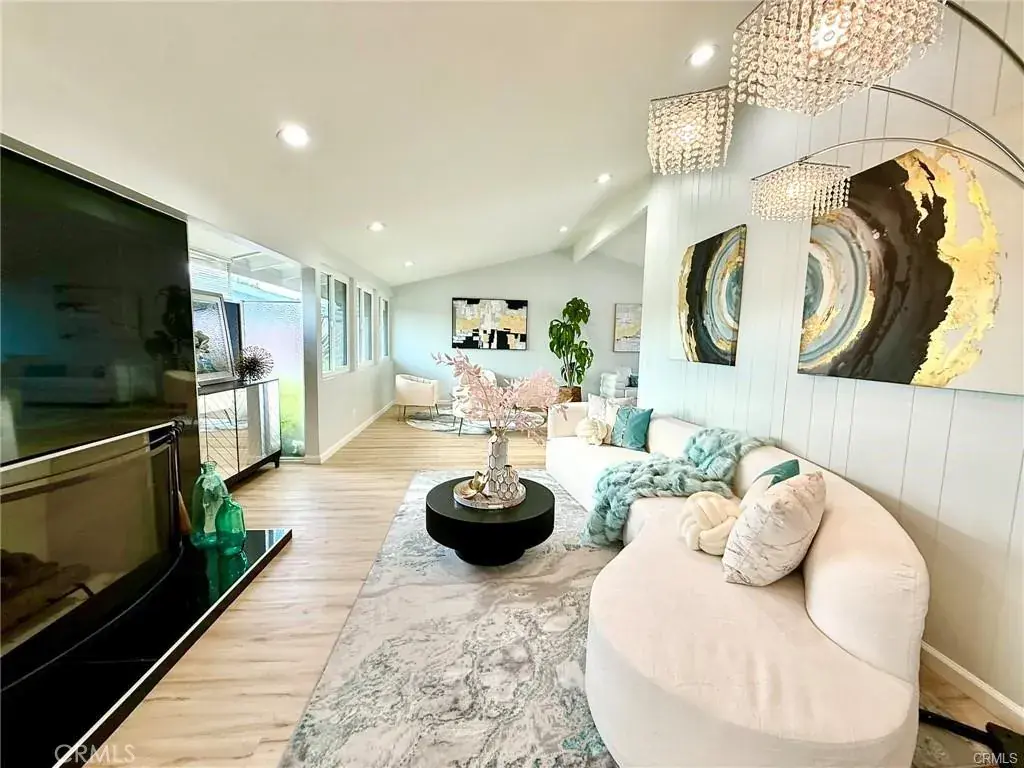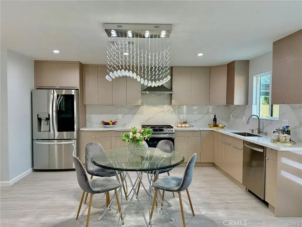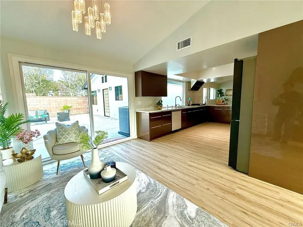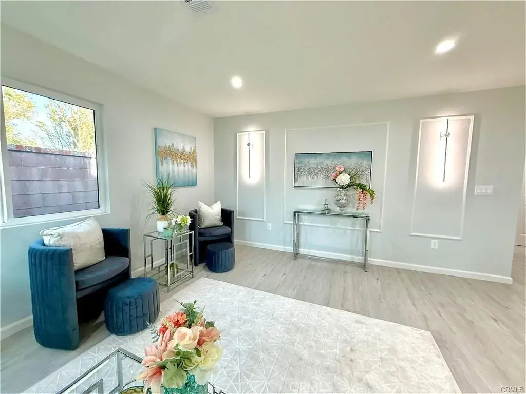 Welcome to this one-of-a-kind Rossmoor compound offering two separate gorgeous homes. The Main House – 3 bedrooms, 2 baths. The ADU – 2 bedrooms, 2 baths. This beautifully upgraded property sits on a spacious 8,264 sq.ft. lot. A stunning remodeled main house has 1,736 sq.ft. of modern living space. A beautiful metal fence with automatic sliding door enhances its curb appeal. Neutral waterproof vinyl flooring, elegant chandeliers, and recessed lighting throughout. The cozy living room features a striking natural stone, wood-burning fireplace. The gourmet kitchen with gorgeous quartz countertop is complete with a 5-burner cooktop, advanced Smart Slended IQV technology rangehood, built-in microwave/oven combo, and high-end Samsung Bespoke appliances, including a smart white-glass dishwasher and 4-door French-door refrigerator with a beverage center. Both bathrooms are beautifully remodeled with frameless LED wall vanity mirrors. An indoor laundry area includes a washer and dryer for added convenience. A paved concrete spacious yard separates the newly constructed, fully permitted ADU (Accessory Dwelling Unit) which boasts nearly 1,000 sq.ft. of sophisticated living space with its own private address. The open-concept layout includes a bright living area with stylish wall sconces, recessed lighting, and a formal dining area under an elegant crystal chandelier. The sleek kitchen features a 5-burner gas range with rangehood, dishwasher, and a premium LG Instaview 3-door refrigerator. The spacious primary suite offers a large walk-in closet with built-in organizers and a vanity with lighted drawers. The secondary room with a walk-in closet and organizer is across the hallway bath. It also includes an in-unit laundry area with washer and dryer. Located in the award-winning Los Alamitos School District, this property is more than a home—it’s a savvy investment. Whether utilized as a high-end rental, a guest house, or a private compound for extended family, this impressive Rossmoor gem is a rare find and a must-see.