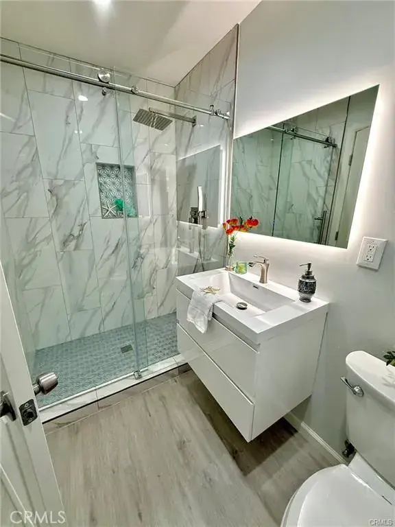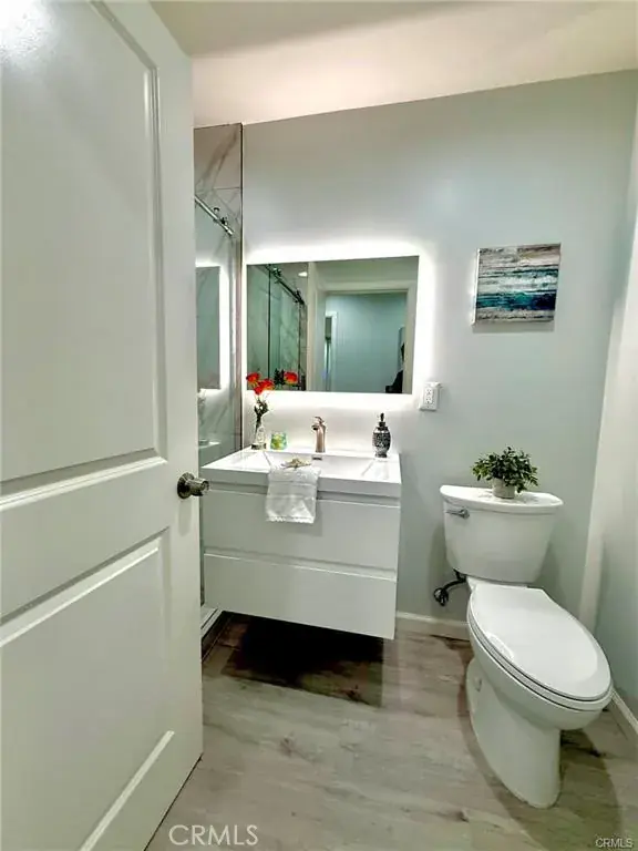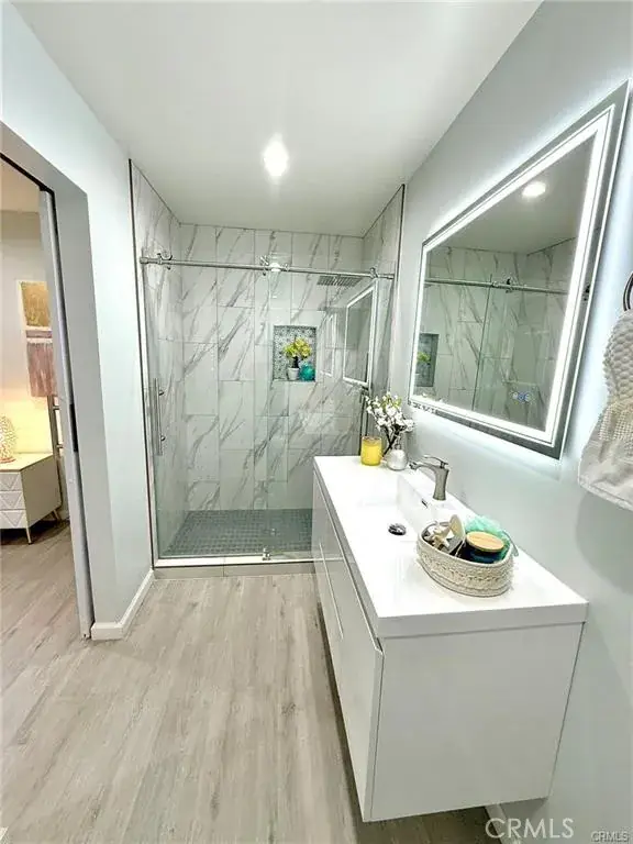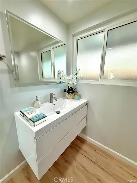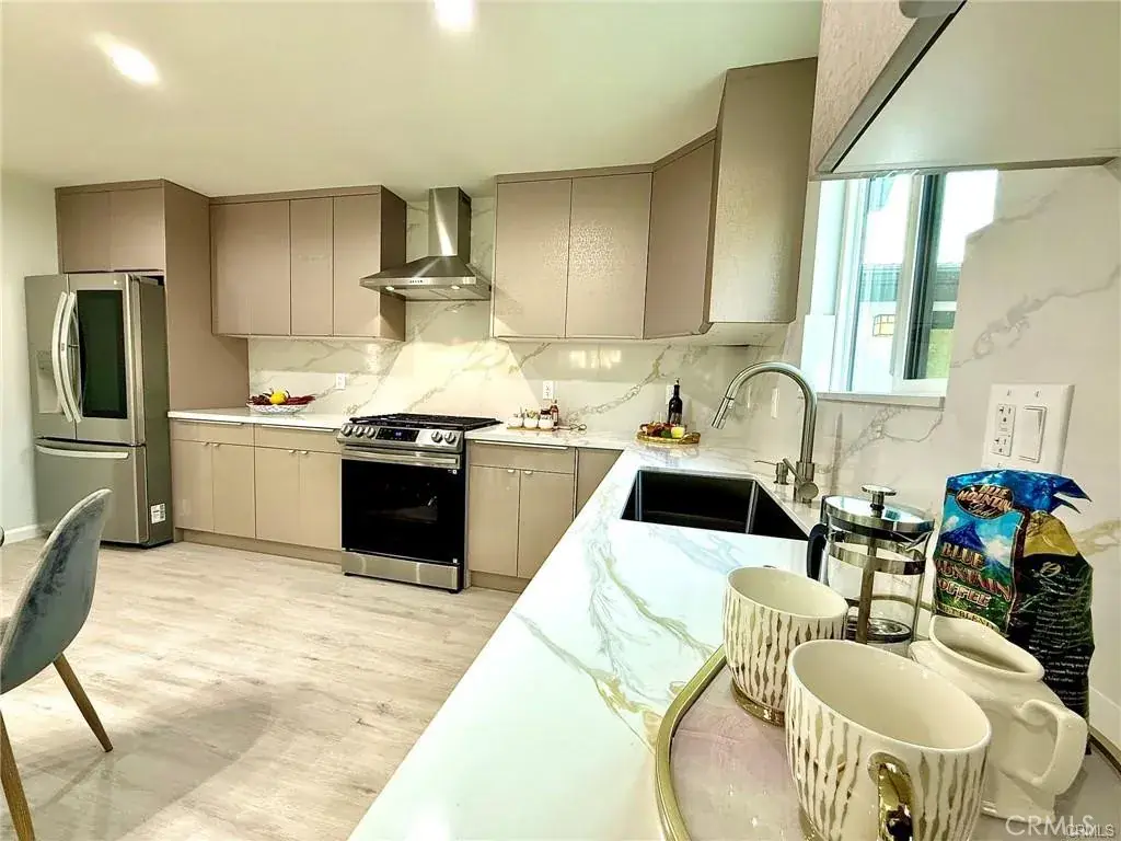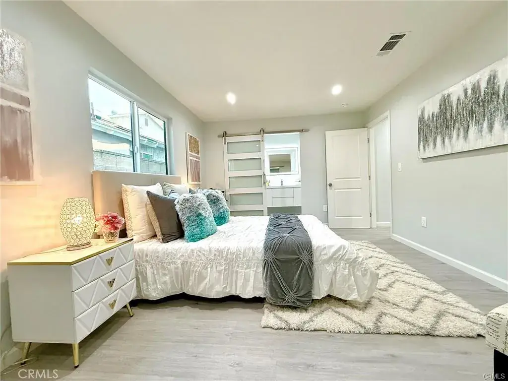 Welcome to this one-of-a-kind Rossmoor compound offering two separate gorgeous homes. The Main House – 3 bedrooms, 2 baths. The ADU – 2 bedrooms, 2 baths. This beautifully upgraded property sits on a spacious 8,264 sq.ft. lot. A stunning remodeled main house has 1,736 sq.ft. of modern living space. A beautiful metal fence with automatic sliding door enhances its curb appeal. Neutral waterproof vinyl flooring, elegant chandeliers, and recessed lighting throughout. The cozy living room features a striking natural stone, wood-burning fireplace. The gourmet kitchen with gorgeous quartz countertop is complete with a 5-burner cooktop, advanced Smart Slended IQV technology rangehood, built-in microwave/oven combo, and high-end Samsung Bespoke appliances, including a smart white-glass dishwasher and 4-door French-door refrigerator with a beverage center. Both bathrooms are beautifully remodeled with frameless LED wall vanity mirrors. An indoor laundry area includes a washer and dryer for added convenience. A paved concrete spacious yard separates the newly constructed, fully permitted ADU (Accessory Dwelling Unit) which boasts nearly 1,000 sq.ft. of sophisticated living space with its own private address. The open-concept layout includes a bright living area with stylish wall sconces, recessed lighting, and a formal dining area under an elegant crystal chandelier. The sleek kitchen features a 5-burner gas range with rangehood, dishwasher, and a premium LG Instaview 3-door refrigerator. The spacious primary suite offers a large walk-in closet with built-in organizers and a vanity with lighted drawers. The secondary room with a walk-in closet and organizer is across the hallway bath. It also includes an in-unit laundry area with washer and dryer. Located in the award-winning Los Alamitos School District, this property is more than a home—it’s a savvy investment. Whether utilized as a high-end rental, a guest house, or a private compound for extended family, this impressive Rossmoor gem is a rare find and a must-see.
