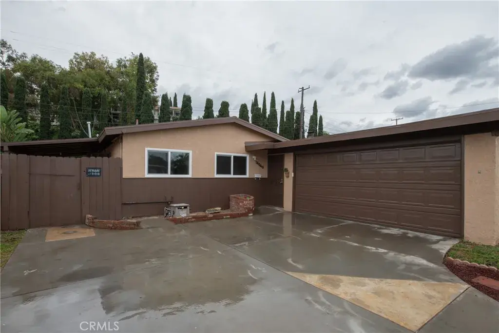 Upon entering you are greeted by a beautifully framed brick fireplace and open beam ceilings. From this charming living room, head off to the LEFT of the fireplace into your light-filled (sliding glass doors leading to the backyard) BONUS room (aka: playroom, office, art studio – the possibilities are endless). Or head into the dining room by way of a beautiful arched doorway. Once there, it’s “Order Up!” as the ‘chef’ serves you through the nostalgic pass-through window to the kitchen. Chef or Short Order cook, you will feel at home in this bright welcoming kitchen with beautiful Calacatta natural stone counters, plenty of storage space above and below and a newly tiled floor. Also, the convenience of having the washer/dryer hookups in the kitchen means no more trips to the garage to do the laundry! Leaving the laundry area follow the hall to the remodeled bathroom with a glass-doored full shower, replete with black accessories that add a luxurious feel. The stunning wooden vanity with its dark wood accents adds to the stylish features of this spa like bathroom. Lastly, the crisp three bedrooms boast charm with shuttered doors on the closets. And, with charm must come comfort. All windows in the house have been upgraded to new double-paned windows. The outside areas have purposely been left as a blank slate for your imagination. Create an outdoor oasis or many of them with the opportunities provided from this larger lot. This home has easy access to the 60 freeway where many freeways cross nearby making for an easier commute. Welcome home.