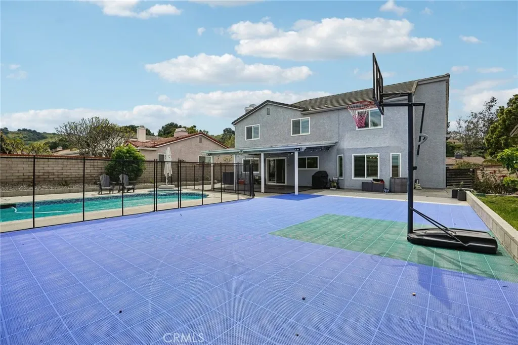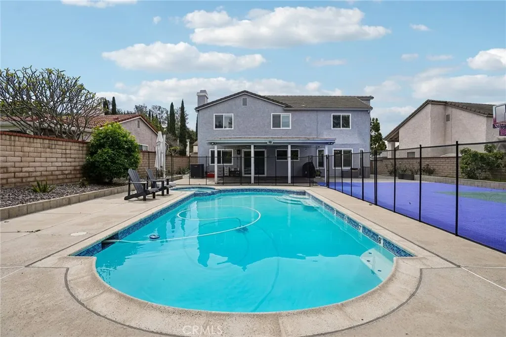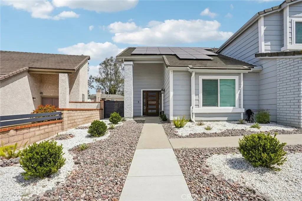 Welcome to this gorgeously fully upgraded move-in ready single-family home, offering 2,453 square feet of living space, 4 spacious bedrooms, and 3 bathrooms and fully paid-off solar panels,. Sitting on an expansive square lot, this home combines comfort, modernity, function, and outdoor entertainment. As you enter, you’re greeted by all the following features: a dramatic high-ceiling living room with custom made chandelier, brand new bold-look main door, custom acoustic walls, a formal dining room, matching hallway and dining room ceiling lights, remodeled kitchen with soft-close cabinets, remodeled wet bar with built-in wine rack, living room with electric fireplace, double-door master bedroom with sliding barn door, a true master bedroom walk-in closet and built-in cabinets, fully remodeled master bathroom with all the amenities including a modern toilet, all brand new plantation shutter windows, new A/C condenser unit, new furnace, tankless water heater, integrated water softener, 2-car garage, and garage outlets for EV charging. Step outside into your private backyard oasis with a refinished sparkling pool, child safety fence, new side gate, landscaped front and back yard, dripping system for plants in front yard, a basketball court with ground padding, and a bevy of fruit trees including fig, lemon, loquat, mulberry and blueberry trees. Located just minutes from top-rated schools, popular restaurants, grocery stores, and major freeways, yet tucked away in a quiet and peaceful neighborhood that is not directly facing Pathfinder Road, this is a rare opportunity to own a home that truly has it all. Come make this your dream home!