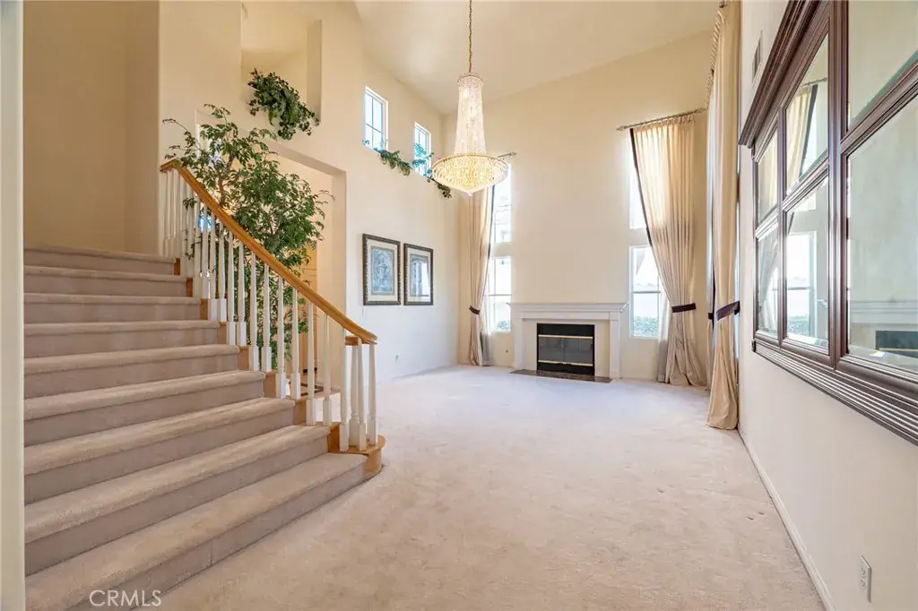 The home features a grand foyer entrance with elegant double doors and a stunning crystal chandelier that creates a welcoming first impression. The formal living room boasts soaring ceilings and a crystal chandelier and opens seamlessly to the formal dining room—perfect for entertaining.
