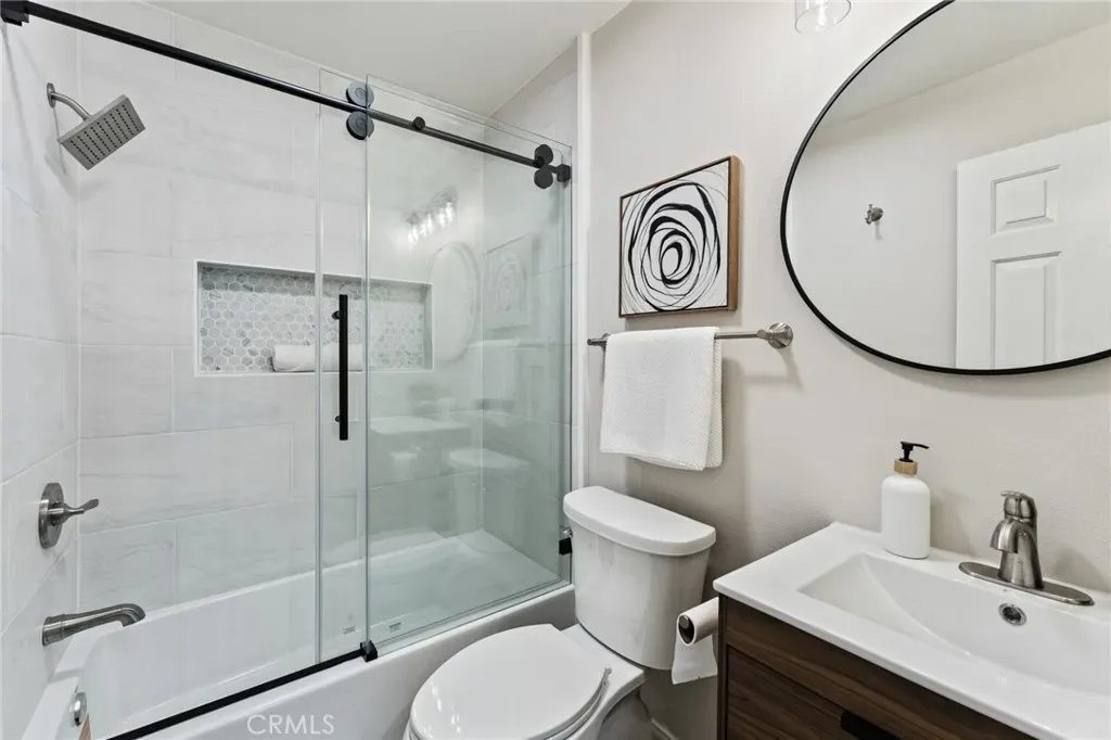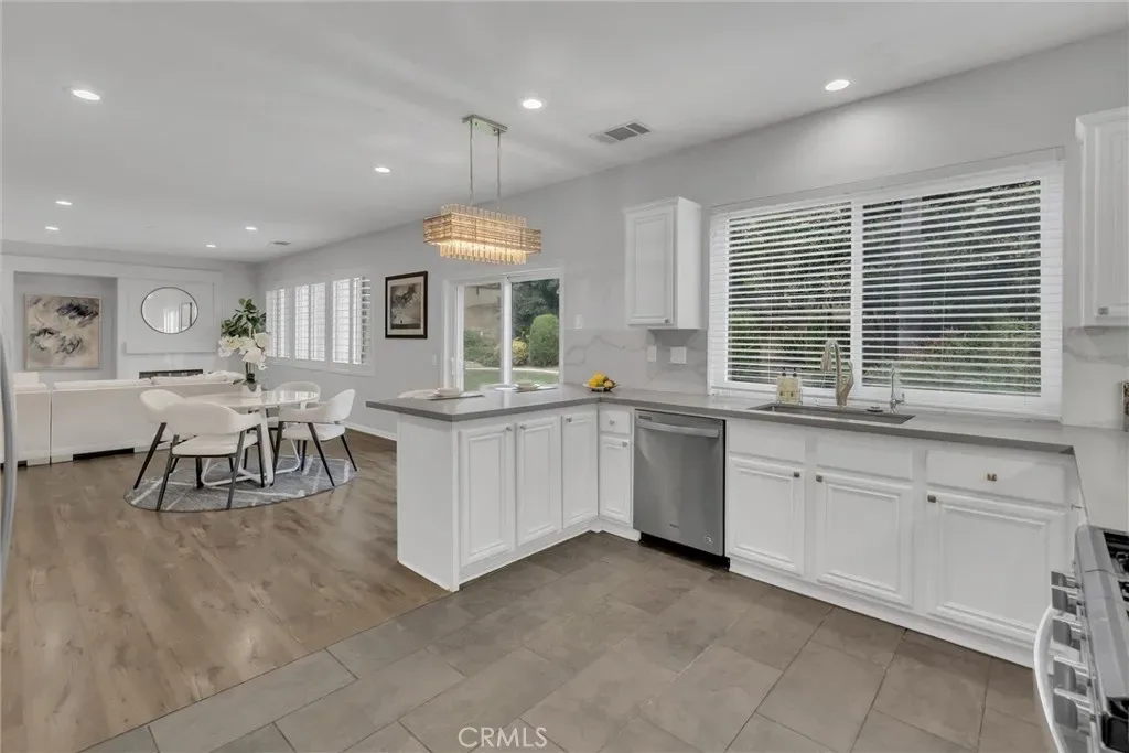 The fully redesigned kitchen features sleek cabinetry and modern finishes, flowing seamlessly into the inviting family room—ideal for both everyday living and entertaining. All bathrooms have been tastefully remodeled with contemporary finishes, providing a cohesive, upscale feel throughout.