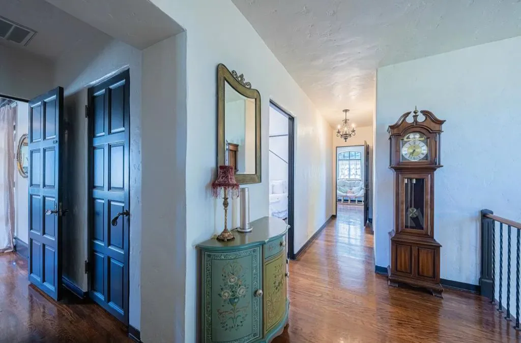 Built in 1930 by Maple Parks developer as the Style Setter Home for Salinas finest neighborhood, Combined living area totals (4698 Sq Ft) this 5 bed, 3 bath Main house (3,998 Sq Ft) Spanish Eclectic is a true architectural gem. Fully remodeled, the home now features a chef’s kitchen with Quartzite island, soapstone counters, and custom Tabarca tile backsplash. All bathrooms have been beautifully updated. Historic charm remains with stucco exterior, newer gabled tile roofs, solid oak floors, wood-beamed ceilings, and classic Mission tile, showcasing exceptional craftsmanship. The main floor includes spacious living, dining, and entertainment rooms, all opening via French doors to the landscaped veranda, enclosed courtyard, and plunge pool. A solarium, office/library, ground floor bedroom and breakfast nook now featuring a built-in coffee bar with extra storage complete the layout. A broad stairway winds past stained glass windows to bedrooms, each with its own balcony. Also included: a fully permitted (700 Sq Ft) guest house unit with 1 bedroom updated bathroom with a full kitchen living room with fireplace. Combined living area totals (4698 Sq Ft) perfect for multigenerational living or rental income.