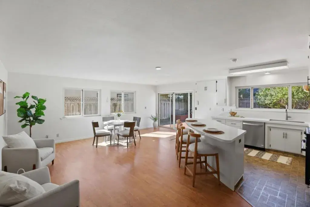 Welcome to this charming 3-bedroom, 2-bathroom home located in the Los Olivos/Riker neighborhood in South Salinas. First time on the market in 50 years! With 1,708 square feet of living space, this home offers a functional layout perfect for modern living. The kitchen is a standout feature, boasting quartz countertops, a convenient island, and a built-in oven range, making it an ideal space for culinary enthusiasts. The home features a variety of flooring, including new carpet in two of the bedrooms, hardwood, and vinyl/linoleum. The family room, combined with the kitchen, creates a welcoming environment for gatherings and relaxation. Stay cozy on cooler nights by the fireplace, a pleasant addition to the living area. For your convenience, the laundry area is located in the garage, which also offers two parking spaces, and a brand new water heater. The interior and garage has been completely painted. Enjoy the blend of comfort and practicality in this well-appointed South Salinas home.