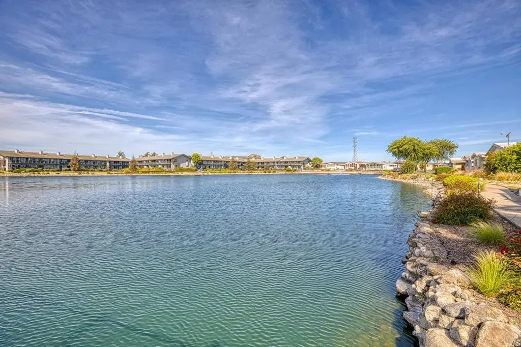 Welcome Home :) This beautifully updated property has amazing views of the lake and move in ready. Sherwood Lake park is a 55+ community with gated entrance for privacy and lots of amenity’s. There is a pool, club house, gym, car wash area, library & RV storage. Centrally located in Salinas close to shopping, restaurants and freeways. This 2 bed, 2 bath home offers 1,344 square feet of living space. Primary bedroom is large with new carpet thru out home. The kitchen is equipped with new modern appliances including a dishwasher, microwave, refrigerator, electric oven range, and features a convenient island for meal preparation and additional seating. The dining area provides a dedicated space for meals. The home includes central forced air heating system. Laundry room has hook ups & storage. Outside is a nice fenced back yard. Automated gate at carport for added security. Newer storage shed is 10×13 for extra space. Come by and see this updated home before it is SOLD !