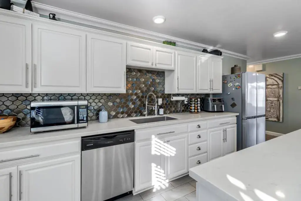 Welcome to this charming 4-bedroom, 2-bath single-family home with a versatile bonus room that can easily function as a 5th bedroom, home office, storage, or flex space. Offering 1,260 sq. ft. of living space on a 3,485 sq. ft. lot, this home features a bright, flowing, and relaxing floor plan filled with natural light. Thoughtful upgrades include wood-look tile flooring, elegant crown molding, and a beautifully renovated, well-appointed kitchentruly the heart of the home. The kitchen boasts marble-style quartz countertops, a custom backsplash, new fixtures, state-of-the-art appliances, an electric oven, and a gas range, making it a chefs delight and ideal for hosting gatherings. Enjoy sunny front and backyard spaces with endless potential for entertaining or relaxing. The low-maintenance backyard features stained concrete, perfect for summer barbecues, gatherings, or peaceful evenings with loved ones. Nestled in the highly desirable Harden Ranch neighborhood of Salinas, this home is conveniently located near parks, shopping, dining, and top-rated schools offering comfort, functionality, and a prime location. A must-see in person to truly appreciate all it has to offer. Did I mention the roof is less than 5 years old.