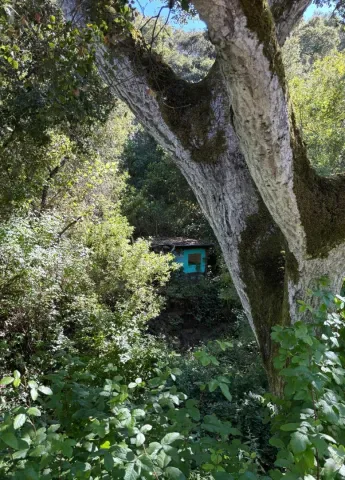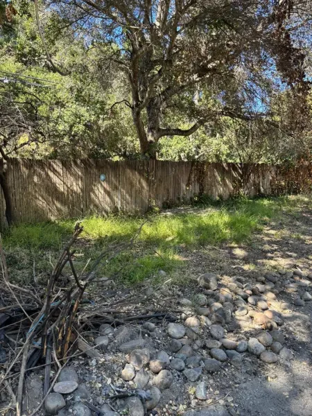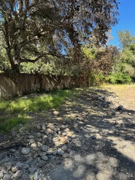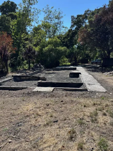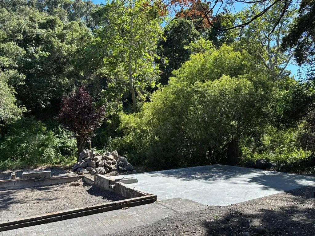 Beautiful, sunny and serene describes this easily buildable 1.27 acre lot along coveted Corral de Tierra. House foundation and garage slab are still standing and look to be in good condition after house burned down in April, 2025. This foundation supported a 3 bedroom, 2 bathroom, 1,324 sq. ft. single-level house with a 20’x26′ garage. Small green shed can be seen through the lush trees and thick vegetation on hillside behind. Great opportunity to build the home of your dreams in such a lovely location. Circular dirt driveway in front for ease of parking. Septic, water tank propane tank and well seem to have not been affected by fire. Lot extends approximately 3/4 of the way up the hillside behind and there is a seasonal creek that runs in the gully between the yard and the hillside.