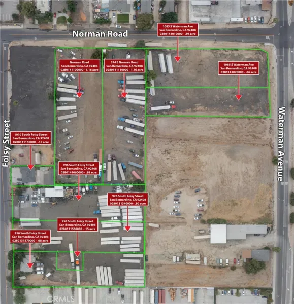 Great opportunity for development in San Bernardino, with this approximately 6.9 acres of land for sale in the fast growing industrial area. This includes 9 separate parcels, with frontage on multiple streets. There are several structures on the land for possibly office space. This property is centrally located to the 10, 210, 215 freeways, as well as the the San Bernardino International airport, and the rail system. The city is home to major employers like Amazon, Stater Bros, Cal State San Bernardino. San Bernardino presents a wide range of economic opportunities for businesses. There’s a diverse economy, along with a strategic location, there’s a lot of growth and opportunity. Buyer to verify all use and zoning with the city of San Bernardino.