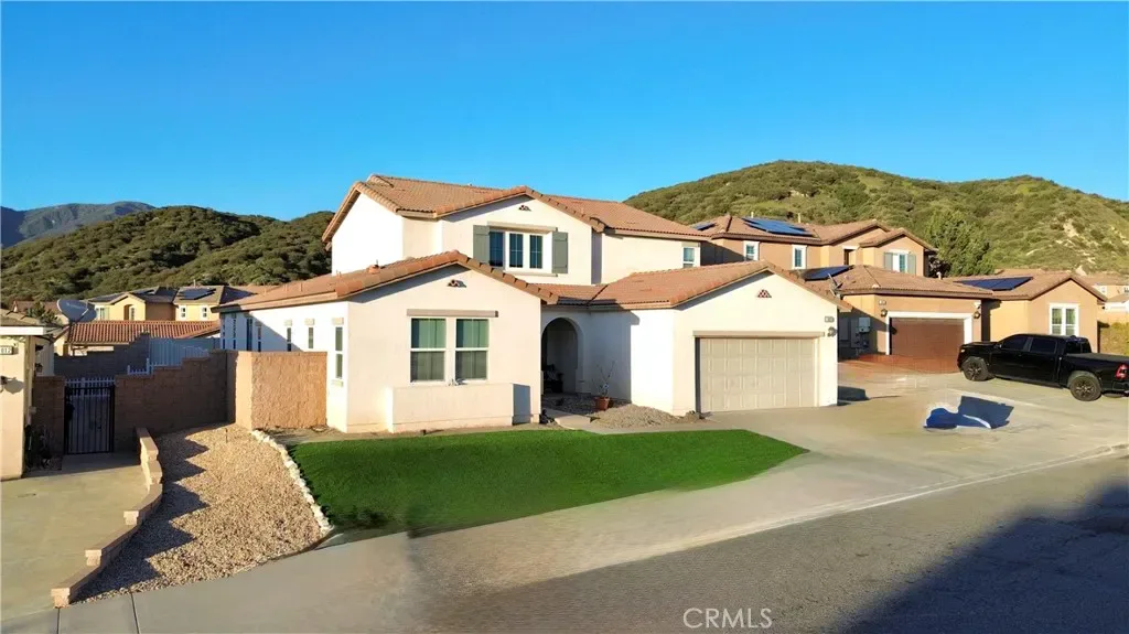 Nestled in the highly sought-after Rosena Ranch community in San Bernardino, this beautifully designed two-story home offers comfort, functionality, and modern style across 3,156 square feet of living space. Built in 2017, this 4-bedroom, 3.5-bathroom home is ideal for multi-generational living or those seeking ample space to relax and entertain. Step inside to discover an open-concept floor plan that seamlessly blends the living room, dining area, and kitchen, perfect for hosting gatherings or enjoying cozy nights at home. The kitchen is the heart of the home, featuring generous counter space, modern cabinetry, and a layout that flows effortlessly for everyday living. Designed with convenience in mind, the home features two main bedrooms, including one downstairs with an en-suite bathroom—ideal for guests, extended family, or accessibility needs. Upstairs, you’ll find a large loft, ideal for a media room, home office, or kids’ play area, along with the second main bedroom featuring its own private bath. Additional highlights include: Central air and heating for year-round comfort, attached garage, tile roof and low-maintenance landscaping, Located on a 6,499 sq ft lot. A unique opportunity to own in a desirable, well-maintained neighborhood – Don’t miss your chance to make this beautiful residence your forever home in Rosena Ranch—a community known for its peaceful surroundings, mountain views, and easy access to schools, parks, and freeways.