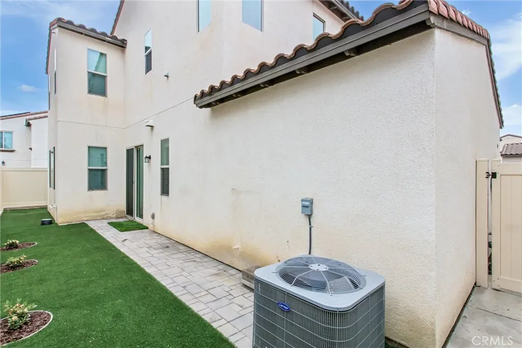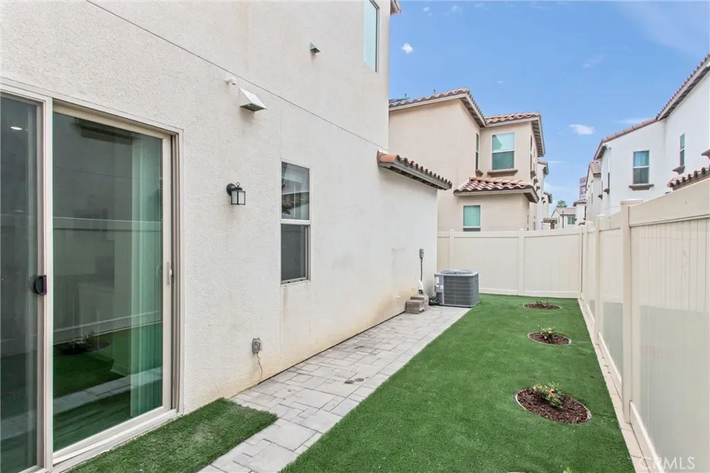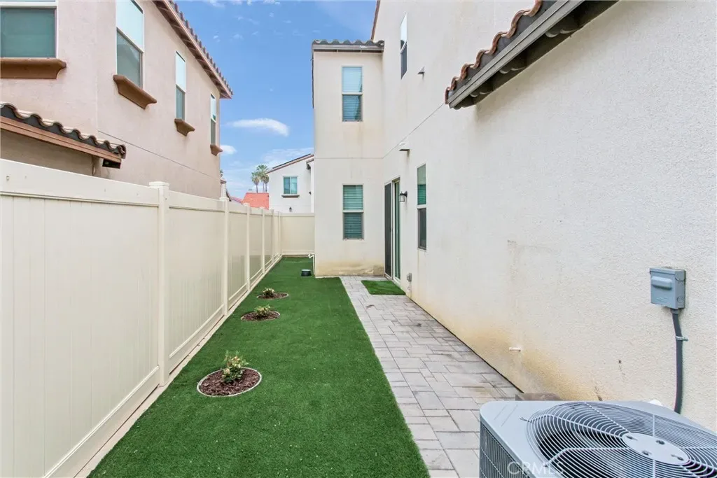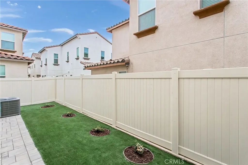Outside, enjoy a low-maintenance backyard designed for ease and sustainability, featuring eco-friendly synthetic turf and a mature lemon tree—perfect for relaxing or entertaining.