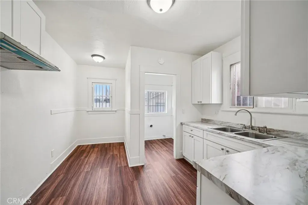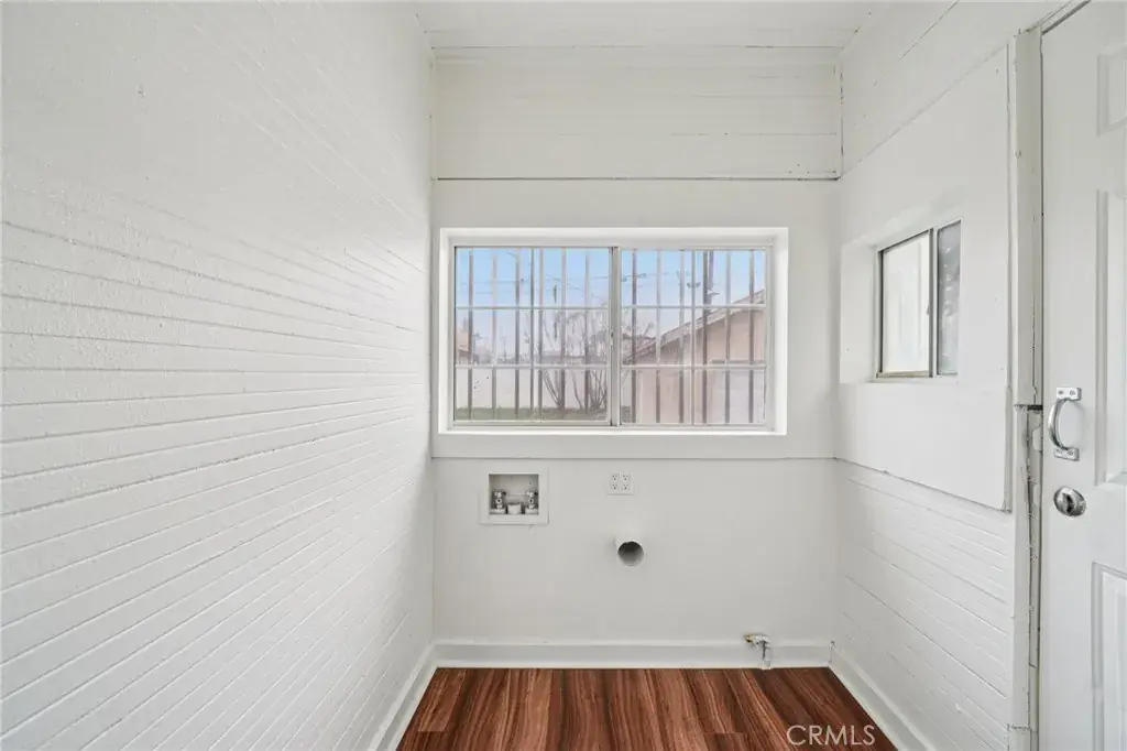 The fully renovated kitchen boasts brand-new finishes, a charming breakfast nook area, and convenient access to the indoor laundry area with gas hookups, perfectly located just off the kitchen for ease and functionality.