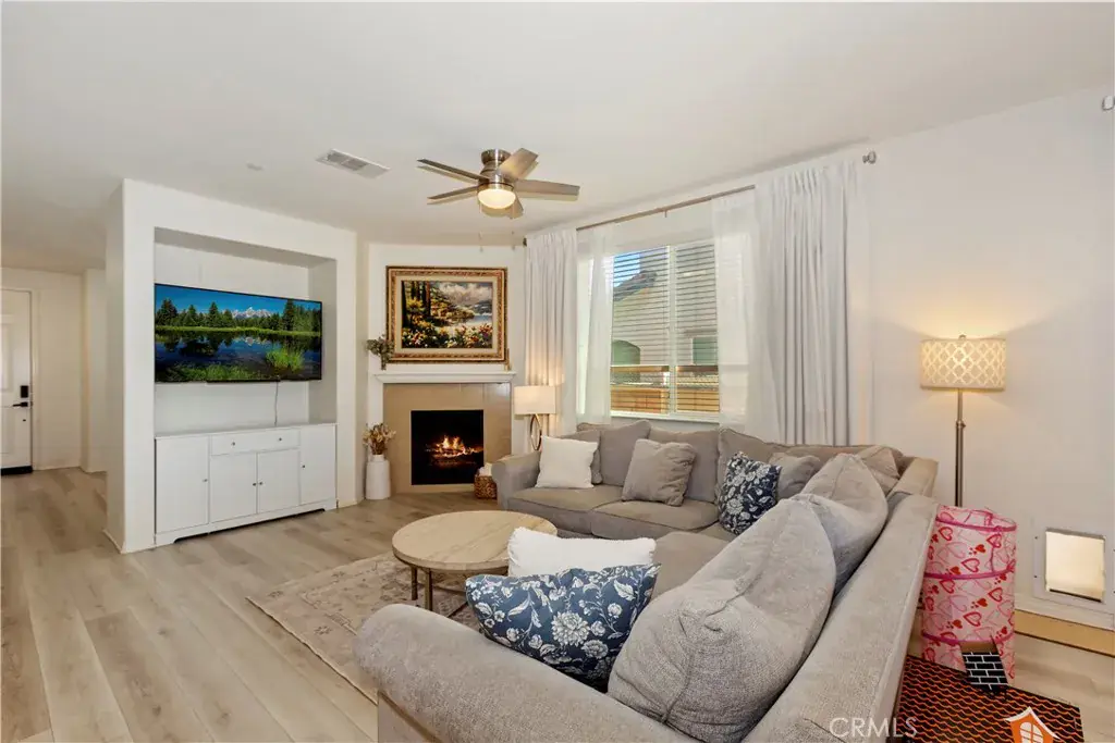 The backyard is the perfect place to ENTERTAIN and relax!! It has been upgraded with an alumawood patio cover with a ceiling fan, artificial turf, and custom hardscape. It is a great space for pets that has been secured to keep them safe. The Rosena Ranch HOA amenities include a club house, meeting room, picnic and BBQ areas, a sports park, two pools including a kids splash park, playgrounds, trails and a fitness center that includes a yoga room. This is a beautiful place to call home in an AMAZING community! It will not last long!!