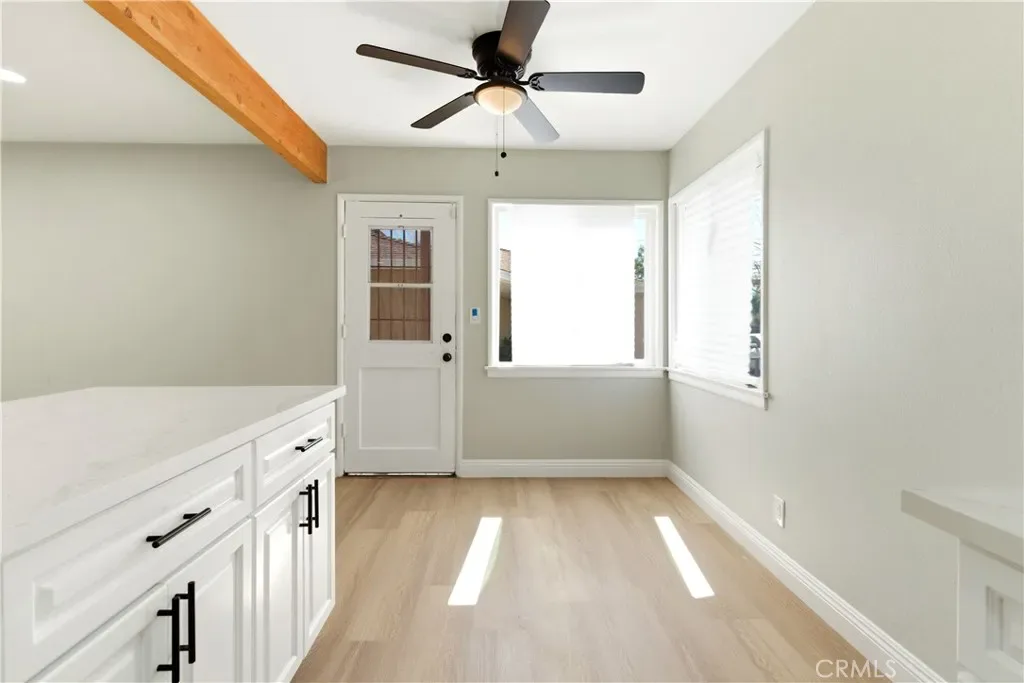 FOR SALE ONLY. This charming, and spacious home is in the BEAUTIFUL city of SAN BERNARDINO. In a beautiful tree lined street is this single-story home that has 3 bedrooms and 2 bathrooms. Completely remodeled and turnkey, with a NEW Iron gate, NEW paint inside and outside, NEW custom laminate floors, NEW quartz countertops, NEW baseboards, NEW kitchen cabinets, NEW light fixtures, NEW hardware, NEW dishwasher, NEW modern faucets, NEW custom kitchen backsplash, NEW recessed lighting, NEW ceiling fans, NEW windows and so much more. The bathrooms have also been remodeled. A large open floor plan that consists of a living room, dining area, and kitchen that utilizes every square inch of this place making it feel much bigger than it is. THREE ample sized bedrooms AND TWO full size bathrooms.