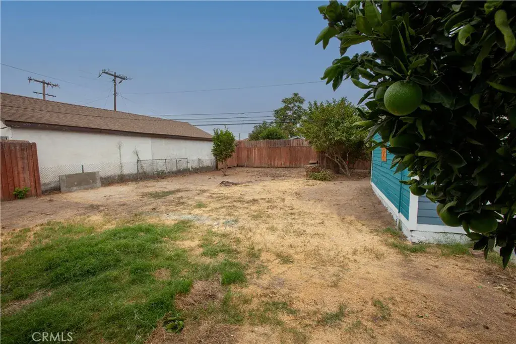 Outside, the oversized yard is fully fenced for privacy and relaxation, featuring a covered patio, and fruit-bearing citrus tree – perfect spot for a bit of shade on a hot CA day. A detached two-car garage provides abundant storage and exciting potential for an ADU conversion, while a side gate offers easy access for recreational vehicles.