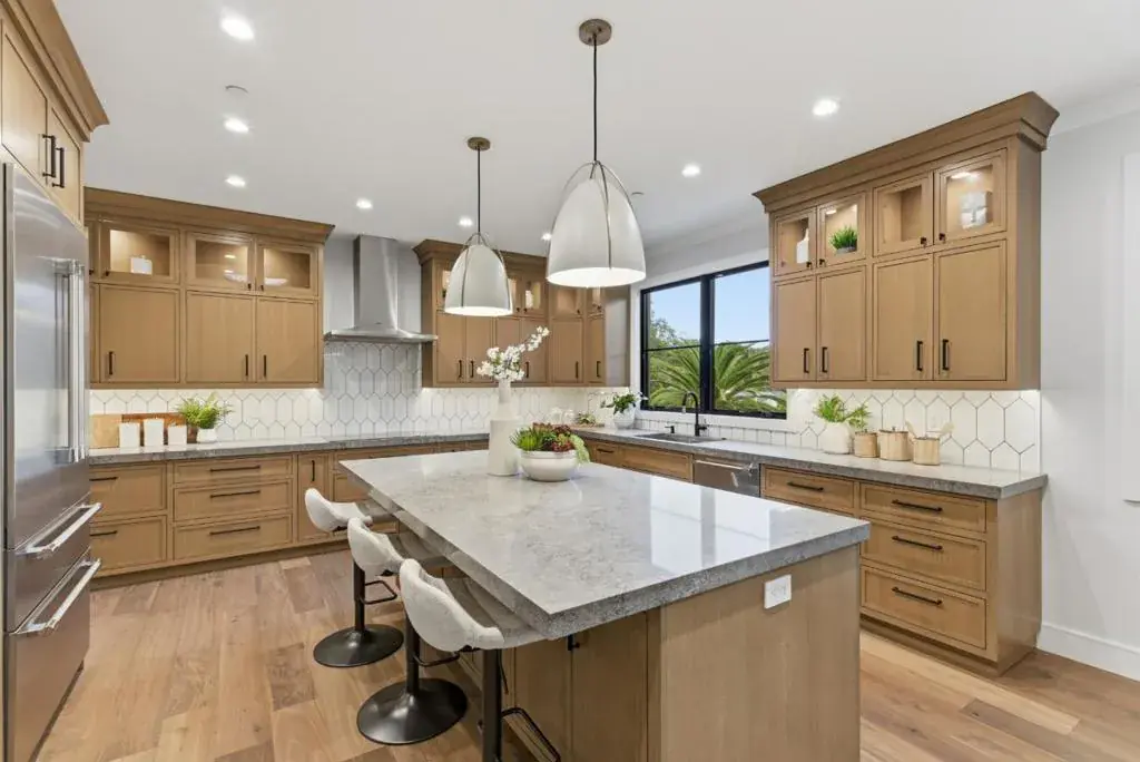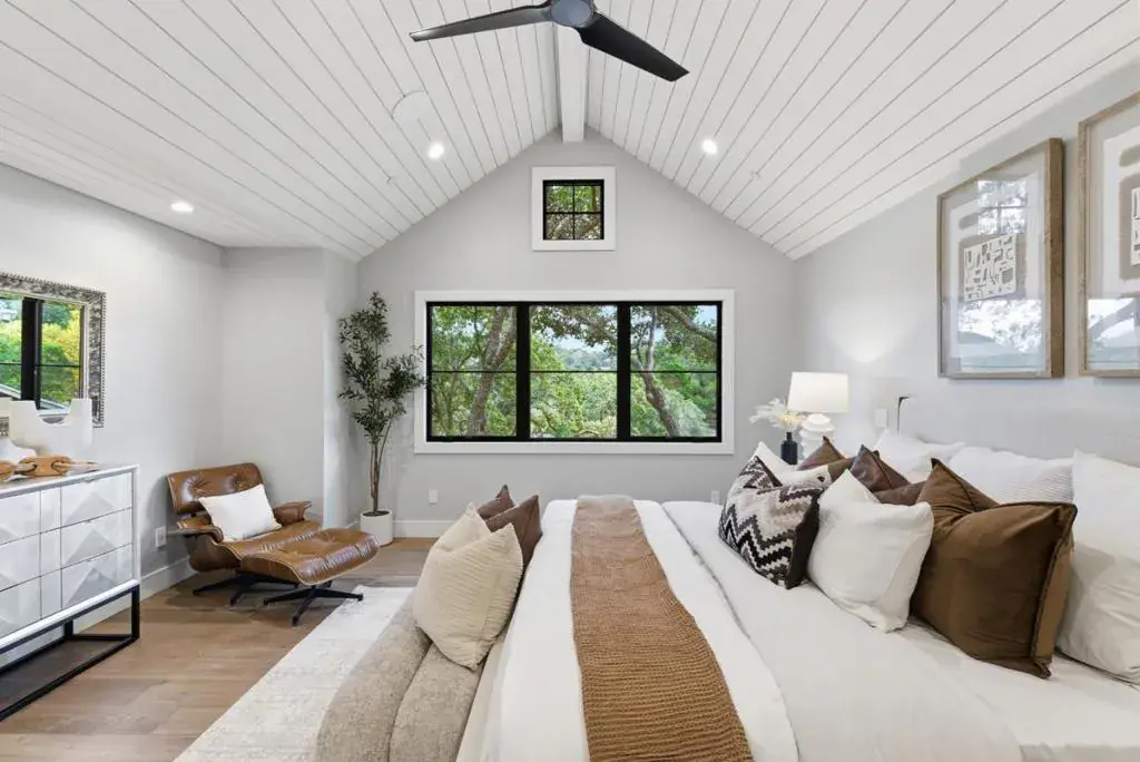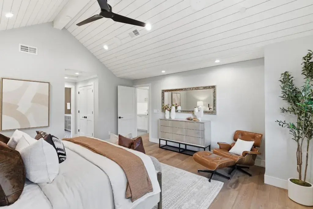 Set in the coveted Devonshire Canyon, this newly built custom modern residence offers 3,714 Ãñ sq. ft. of beautifully curated living space on an expansive 14,591 sq. ft. lot. Designed with a harmonious blend of sophistication and comfort, the home showcases an airy open floor plan, dramatic pitched and beamed ceilings, and exceptional craftsmanship throughout. With 5 ensuite bedrooms and 5.5 baths, every space has been thoughtfully appointed for refined living. The chef’s kitchen is a culinary space featuring a butler’s pantry, an impressive center island, and Thermador appliances. The adjoining family room is anchored by a slider that opens to a sweeping covered porch and yard, creating a graceful indoor-outdoor flow. The main level includes a private ensuite bedroom with its own entrance. Upstairs, 3 additional ensuite bedrooms, a retreat area, laundry room, and the luxurious primary suite, complete with a spa-inspired bath featuring a soaking tub, double vanity, and shower. The home has been pre-wired during construction with Leon Audio Video and is ready for “Smart Home” technology if you choose. There is a 240 plug in the garage, central heating & air conditioning, along with solar panels for year-round efficiency and comfort.