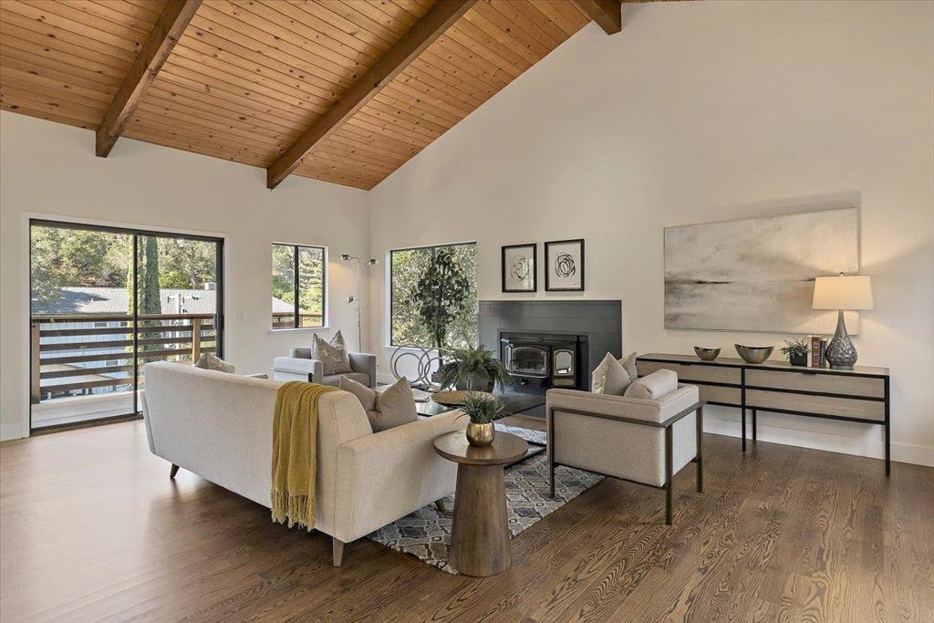 Nestled in Devonshire Canyon, this thoughtfully designed home offers privacy & openness with approximately 3,900 sq ft of living space & decks on every level inviting year-round enjoyment of canyon setting. Main level is ideal for everyday living & entertaining, featuring vaulted beam ceilings, hardwood floors, & living room with fireplace that flows seamlessly into dining room with wet bar & access to a wraparound deck. Kitchen offers abundant cabinetry, center island with cooktop, breakfast bar seating flowing into a step-up family room with additional dining space, while a powder room completes this level. Second level features a primary suite with private deck, fireplace, dual closets spacious bathroom with dual sinks, jetted tub & separate shower, along with a second bedroom, full bath, & laundry room. Two additional bedrooms & a full bath are located on third level. A bonus room with separate entrance & bathroom offers flexible space ideal for a home office, gym, or studio. Additional features include an oversized two-car garage, fresh interior and exterior paint, updated lighting, and additional parking on a separate street. Located in San Carlos, The City of Good Living, near dining, boutique shopping & highly regarded San Carlos schools.