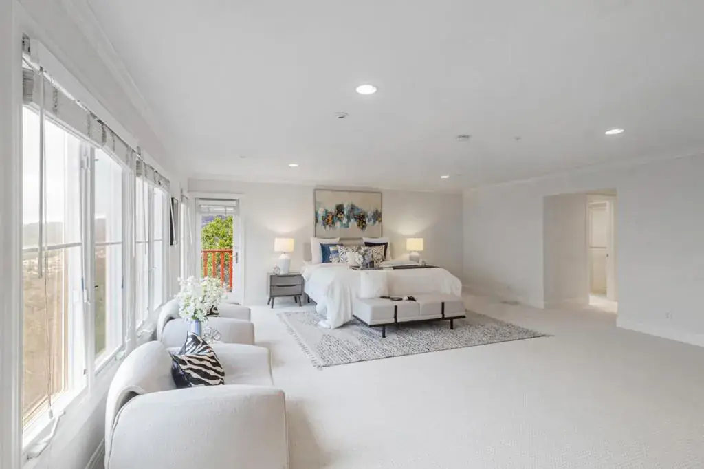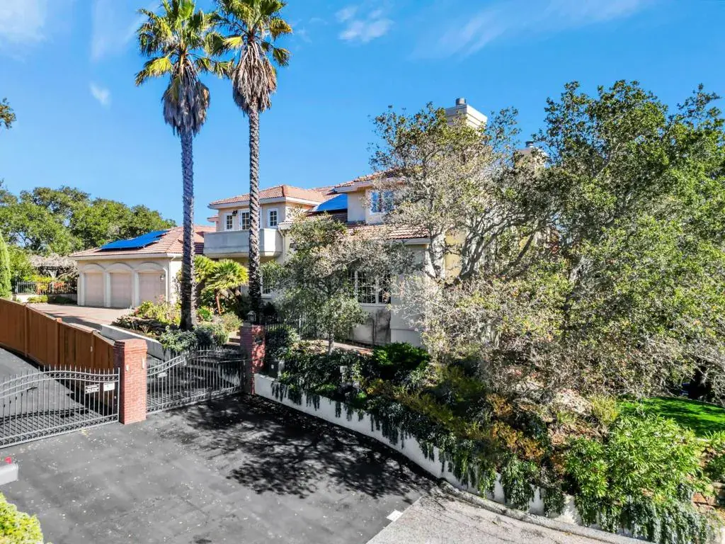 Majestically situated on a lush .47-acre lot at the end of a quiet, scenic cul-de-sac, this exquisite custom-built home commands attention with its Mediterranean-inspired design, impeccably manicured grounds, and breathtaking panoramic Bay views. Spanning over 6,500 square feet, the home boasts five bedrooms and five full bathrooms, offering a perfect balance of grandeur and warmth. The thoughtfully designed three-level floor plan features soaring ceilings, elegant marble finishes, and expansive windows that showcase stunning views from every room. Regal fireplaces and gleaming hardwood floors enhance the sophisticated yet inviting ambiance throughout the home. Outside, the grounds are a masterpiece of vibrant landscaping adorned with fragrant wisteria, heritage oaks, and romantic pathways. Sweeping view-facing decks, a level lawn area and an enchanting arbor create an idyllic outdoor retreat, perfect for relaxation or entertaining. Located just minutes from the dynamic energy of Silicon Valley, this rare and extraordinary home provides a peaceful sanctuary to unwind and recharge after a busy day. Welcome home!!!