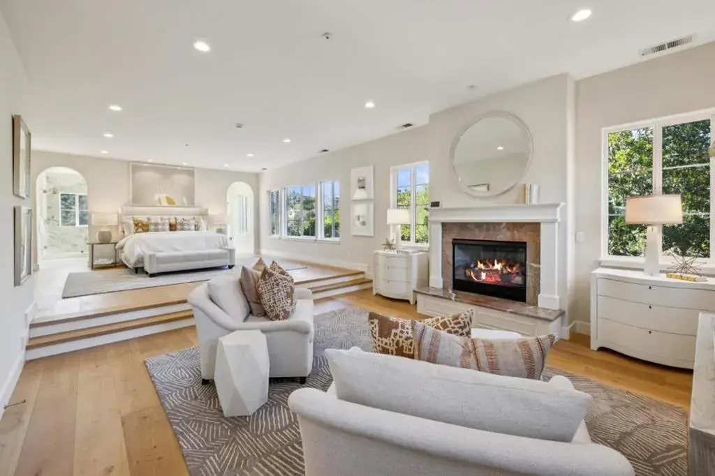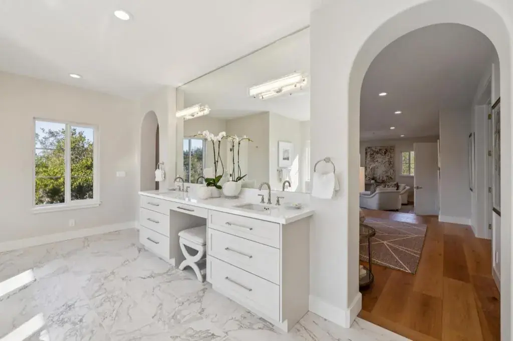 In the exclusive Hyde Park Estates, a Modern Mediterranean-inspired hilltop home with serene views of Devonshire Canyon was masterfully renovated in 2025 to embody a relaxed yet sophisticated style. Gracefully arched windows and doorways, spacious light-filled rooms, elevated ceilings with layered lighting, wide-plank white oak flooring and a minimalist neutral palette combined to create a luxurious new look and feel. The magazine-worthy custom-crafted home spans 5,570+/- sq. ft. across two levels. Living areas include a stately living room with majestic arched windows and a box-beam ceiling, sleek, modern kitchen with gourmet workspace and indoor-outdoor dining, formal dining room with a dazzling chandelier, family room for entertaining on any scale, and luxurious primary suite with a fireside sitting room and bougie bathroom. Enjoy terraces on each level of the home and a ground-level patio in a private, wooded setting. Feels worlds away from the hustle, yet it is within 2.5 miles of Downtown San Carlos, highly rated schools, parks, Farmers Markets and US-101. *One of the largest homes in San Carlos, this property is offered at ~$1039 per sq. ft.*