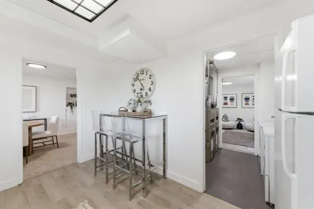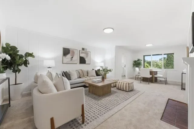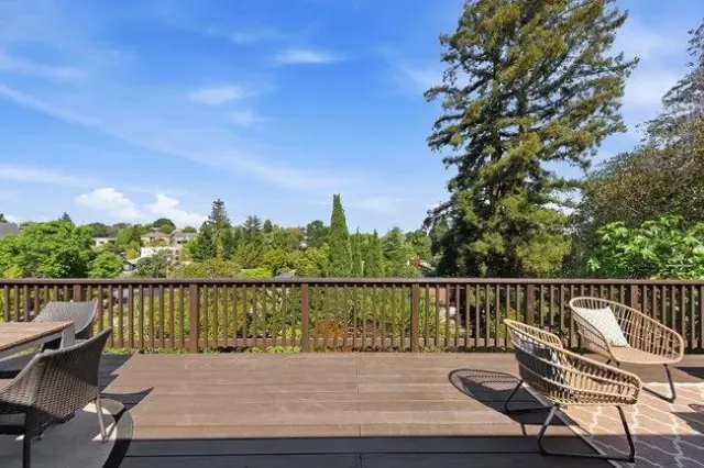 Tucked into the scenic hills of San Carlos, this versatile two-story home offers sweeping views, generous living space, and flexible options for your personal needs. Set back from the street with a private front lawn, the upper level features a bright living and dining area opening to a large deck with peek-a-boo Bay views, a kitchen with views and access to the garage, and two bedrooms with a full bath. The lower level mirrors the layout with its own kitchen, spacious living area, two private decks, laundry, and a newly finished bonus room. Outside, a tranquil backyard with mature trees provides a relaxing retreat. Move-in ready with recent updates including new flooring, fresh paint inside and out, updated lighting, landscaping, an epoxied garage floor, and a stained deck, the home also offers room to personalize. Located less than a mile from downtown San Carlos, it provides easy access to Caltrain, local shops, trendy restaurants, and highly rated schools, combining peaceful hillside living with everyday convenience.