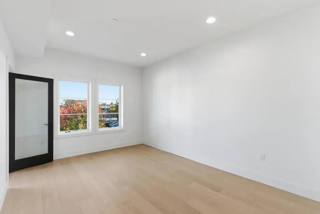 New construction condo. Spacious layout with private balcony. Steps to dining and transit. Welcome to this newly constructed 2 bed, 2 bath condo with a bonus room off the kitchen, the largest floor plan in the building at 1,425 sq ft. This split layout features bedrooms on each side, providing ideal privacy. Enjoy a large family room with 9 ft ceilings and sliding doors leading to an extra spacious private balcony. The primary suite includes an ensuite full bathroom with an LED mirror, adaptable shower, and walk-in closet. This unit boasts new appliances, including a washer and dryer, refrigerator, gas stove, and oven. Enjoy the comfort of air conditioning and efficient heating throughout the home. A convenient half bathroom at the entrance and no stairs in the unit make this a convenient, low-maintenance home. Assigned parking in a secure garage and exterior security cameras adds peace of mind. Proximity to Laurel Street, San Carlos Caltrain Station, and San Carlos Public Library enhances local living.