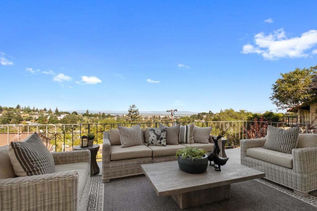 Located in the lower hills of San Carlos highly sought-after Beverly Terrace neighborhood, this classic elevated rancher offers 1,480 s/f of living space and effortless single-level living on a 4,944 s/f lot. Hardwood floors flow throughout, and the open-concept main living area features a chef-inspired kitchen with breakfast bar and adjoining family room, anchored by a cozy wood-burning fireplace, plantation blinds, and sweeping bay views. A step-down living room with vaulted ceilings and deck access provides a versatile space for entertaining. The spacious primary bedroom includes a walk-in closet and en suite bathroom, complemented by a second bedroom and full bath. An oversized two-car garage adds convenience and storage. Outdoors, enjoy an expansive deck, private landscaped backyard, and panoramic bay and city views. Ideally located near downtown San Carlos shops and restaurants, top-rated schools, and public transit, with easy access to major commuter routes. Top-rated San Carlos schools: Heather Elementary, Tierra Linda Middle School, and Carlmont High School (buyer to verify)