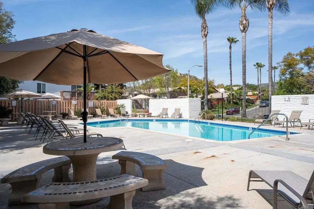 Rarely available single-story, ground-level cottage-style condo in the highly desirable San Carlos neighborhood—with NO neighbors above! Tucked away in a quiet and secluded setting, this 2-bedroom home offers the perfect blend of comfort, privacy, and convenience. Step inside to find thoughtful upgrades throughout, including smooth ceilings (popcorn removed), attic fan, wide baseboards, dual-pane vinyl windows, and slider, updated interior doors, and a beautifully upgraded front door with beveled glass that fills the home with natural light. Additional features include an attic fan for improved energy efficiency, mirrored closet doors, and elegant Norman (plantation) shutters throughout. The spacious and private backyard is a true standout—approximately twice the width of many similar units and fully usable with its flat layout. Enjoy outdoor living under the pergola, plus the convenience of a storage shed and extended concrete walkway leading to the rear gate. Ideally situated in a peaceful interior location within the community, this home is surrounded by lush HOA-maintained greenbelt space and is just minutes from Mission Trails Regional Park, Cowles Mountain, local schools, shopping, and dining. Opportunities like this are rare—don’t miss your chance to own this charming and well-maintained home in one of San Diego’s most sought-after areas!