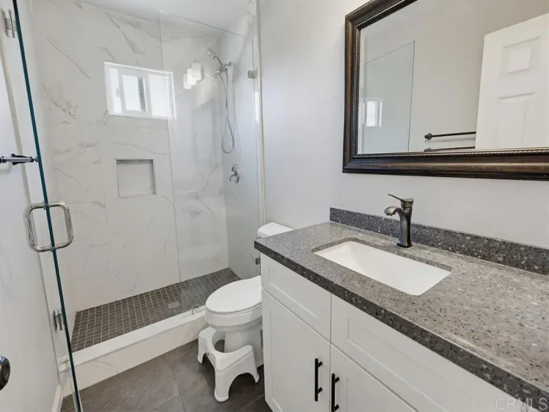 Beautifully remodeled single-story home in the highly desirable San Carlos neighborhood, showcasing thoughtful upgrades, modern finishes, and exceptional functionality throughout. The open-concept floor plan seamlessly connects the kitchen, family, and dining areas, creating an ideal space for both everyday living and entertaining. The home features high ceilings, abundant natural light, recessed lighting, a tile fireplace, laminate wood flooring, and dual-pane windows and doors. The upgraded kitchen is designed to impress with quartz countertops, ample cabinetry, stainless steel appliances, and two oversized islands—perfect for hosting and gathering. Both bathrooms have been tastefully remodeled with updated vanities and custom tile work. Additional interior upgrades include a fully insulated garage with finished flooring, plantation shutters throughout, and a whole-house water softener system. The exterior has been equally enhanced with vinyl fencing, upgraded landscaping, and poured concrete along the sides of the home for clean, low-maintenance functionality. The front and backyard feature artificial turf, and the covered patio provides a great space to relax or entertain outdoors. The home also includes central heat and A/C, along with an upgraded 200-amp electrical panel that is pre-plumbed for solar and battery backup. Ideally located near shopping, dining, Mission Trails Regional Park, and Lake Murray, this home offers a perfect balance of comfort, upgrades, and convenience.