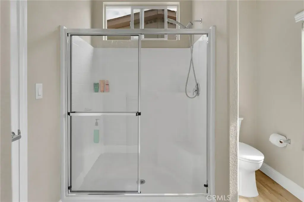 The primary suite offers its own ensuite bathroom with a walk-in shower, plenty of counter space, and double closets for ample storage. The second bedroom and bath provide the perfect setup for guests or a home office.