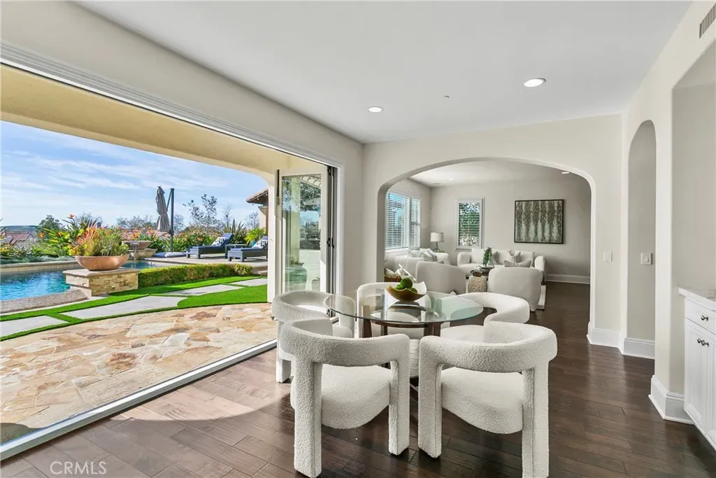Welcome to Lucia Altura, the most exclusive enclave in all of Talega. Set behind gates, on a quarter-acre lot, this exceptional estate offers panoramic ocean, city lights, and sunset views. A private entry courtyard with fireplace welcomes you onto the property, and provides the perfect spot for cool, coastal evenings. Across the flagstone setting, the grand entrance hall sets the stage for an elegant layout with volumes of space and natural light, and a scale that works for small gatherings or large soirees. Hardwood flooring flows throughout most of the residence, connecting elegant formal living and dining spaces, with inviting family areas designed for everyday comfort. The main level includes a separate bedroom suite, library/study, dedicated wine room, and thoughtfully designed transition spaces with classic architectural elements. Upstairs, the five-star primary suite is the ultimate retreat. Set in its own wing, the private space offers a spacious bedroom, sitting area with ocean-view balcony, spa-inspired bath with deep soaking tub and separate shower, plus an oversized walk-in closet. The upper gallery and loft area offer an excellent transition to the additional bedroom suites, and a versatile bonus room which is currently used as a home theater. This residence is designed for seamless indoor-outdoor living and the rear grounds serve as a true extension of the home. An expansive outdoor pavilion anchors the space, complete with kitchen, bar, and big-screen TV, and creates the ultimate setting for year-round gatherings, game days, and glorious ocean-view sunsets. A resort-style pool and spa with classic water features, multiple sunning and entertaining areas and stone walkways complete the outdoor environment…PLUS, an adjacent Casita offers added flexibility for guests or extended stays. Only twenty estates grace the Lucia Altura community and opportunities like this are exceptional. This residence truly represents the best of OC coastal living and best of the Talega lifestyle