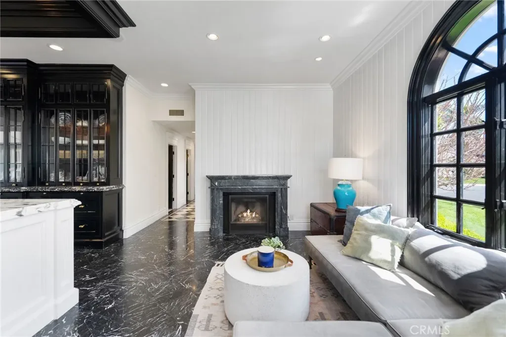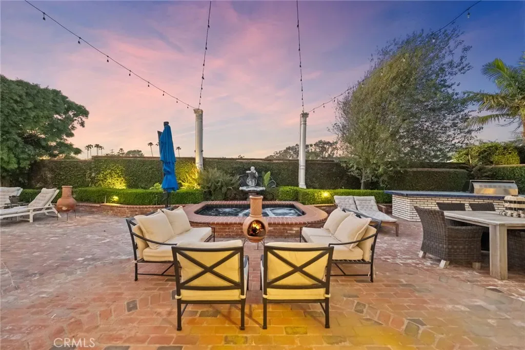Behind the gates of Cyprus Cove, at the end of a cul-de-sac, sits a timeless Stanford Colonial just moments from the beach. Defined by classic brickwork, elegant symmetry, and architecture that never goes out of style. A brick pathway leads to a welcoming Dutch door and gracious entry, where black-and-white checkered marble floors, soaring ceilings, and custom solid wood millwork set the tone for a residence rooted in heritage and design. Simple classical detailing and balanced scale create a sense of architectural integrity rarely found today. At the heart of the home lies a kitchen designed to stand the test of time. Evoking the elegance of Colonial Revival architecture, it features striking black-and-white marble floors and countertops, dual Sub-Zero refrigeration, an expansive island, and a dramatic 60-inch Garland range. The main level unfolds into beautifully proportioned living spaces, including formal living and dining rooms, a spacious family room, media room, and a distinctive poker parlor with wet bar—ideal for both everyday living and elevated entertaining. Two staircases lead to the private quarters, where the primary suite offers a fireplace, generous walk-in closet, and ensuite bath, complemented by two additional bedrooms and a second-floor family room. A third staircase leads to two additional bedrooms and a full bath, offering a sense of separation ideal for guests, extended family, or flexible living. Outdoors, generous brick patios and an in-ground jacuzzi create a relaxed coastal retreat, surrounded by mature landscaping and a private backyard setting. A rare side yard offers potential for a sports court or additional parking for a boat or RV. Residents of Cyprus Cove enjoy private beach access, a clubhouse, tennis courts, park, and pool—all just minutes from world-famous Trestles surf break, downtown San Clemente, and the coastal beach trail. Classic in spirit, rich in character, and quietly luxurious, this iconic Stanford Colonial features soul, scale, and enduring appeal.