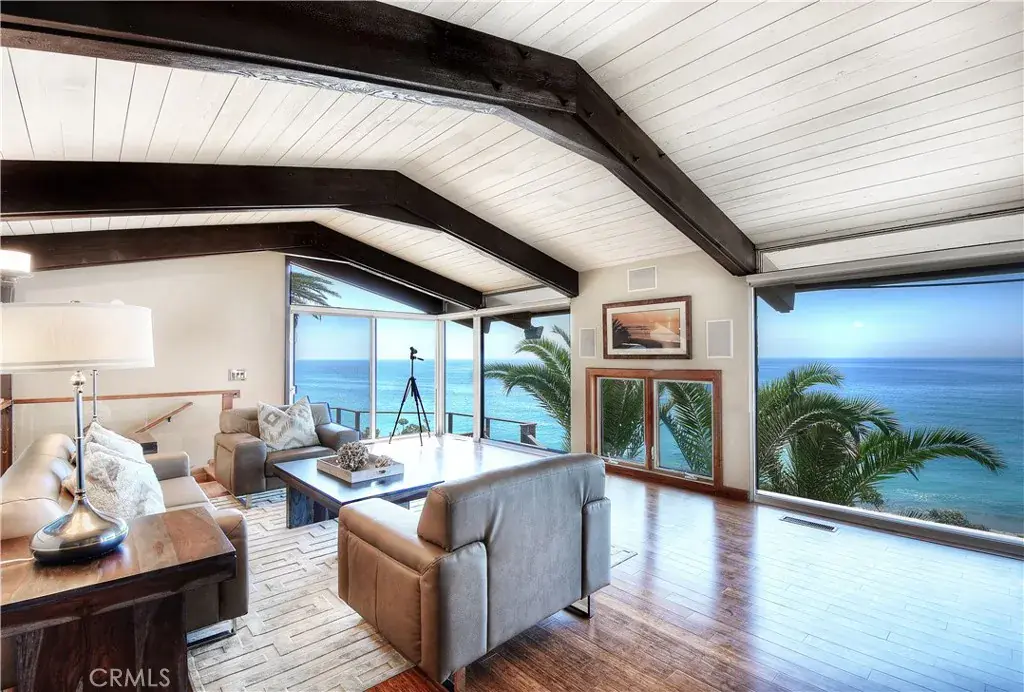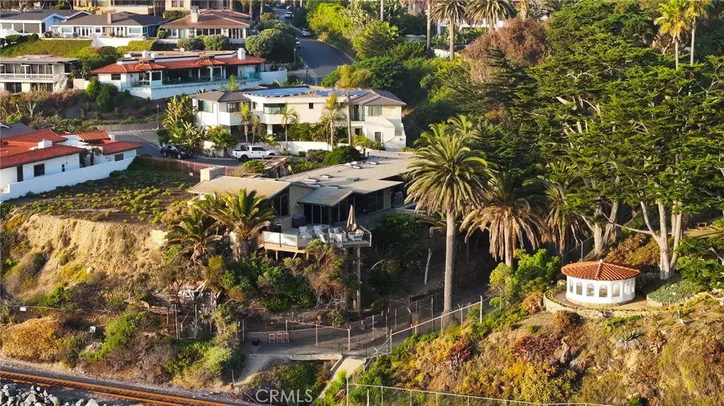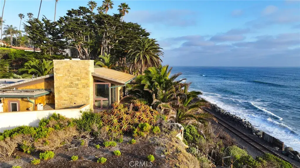 Poised at the end of a private, ocean front cul de sac in the coveted Cyprus Shores community, this residence looks straight out to Cottons Point with unobstructed views all the way up the coastline to Dana Point and out to Catalina & San Clemente Islands. The iconic house holds a slice of history, especially for surf culture, as the previous residence of the late John Severson of Surfer Magazine, and for it’s close proximity of the Nixon Estate, La Casa Pacifica. The rare lot is the largest on the bluff in the neighborhood boasting over 14,700 sq.ft. The mid-century beach house features authentic post and beam ceilings throughout, travertine floors, two outdoor showers, and five bedrooms including a secluded guest quarters. The gourmet chef’s Kitchen is complete with every imaginable appliance from a SubZero refrigerator to a Dynasty oven & gas stove top with griddle, two sinks, a large island, wine fridge, and extensive storage. Step up to the Living Room with a grand fireplace and windows looking over the Pacific Ocean. The Master Retreat is tucked into the side of the cliff and exudes the feeling of being on a boat staring at the waves. The property has over 1,500 sq.ft of wrap around deck with an in ground jacuzzi and room to entertain a plethora of guests. Walk down the private steps to the renown South Gate/Cottons Point beach and just minutes up the beach to the world class surfing at Trestles. Truly a one of kind gem in the beautiful town of San Clemente.