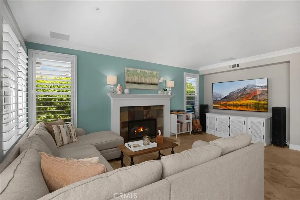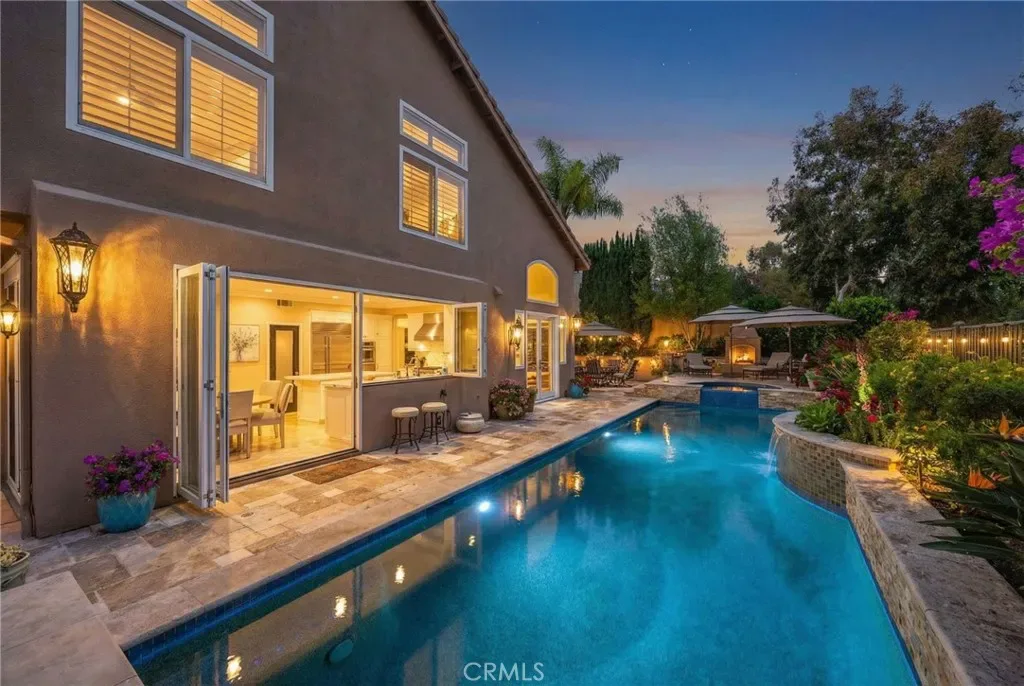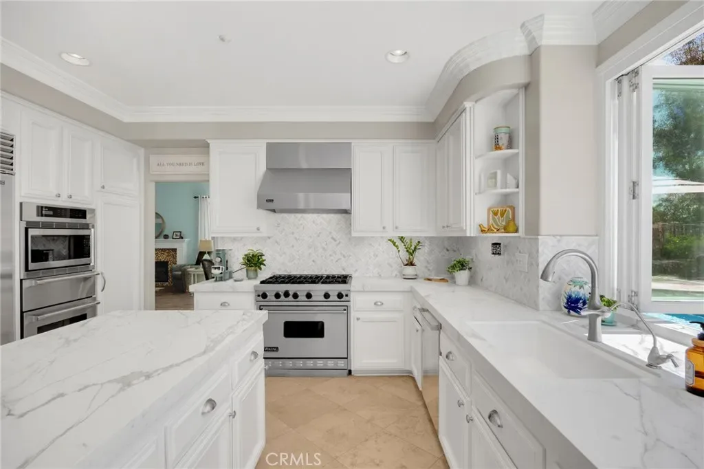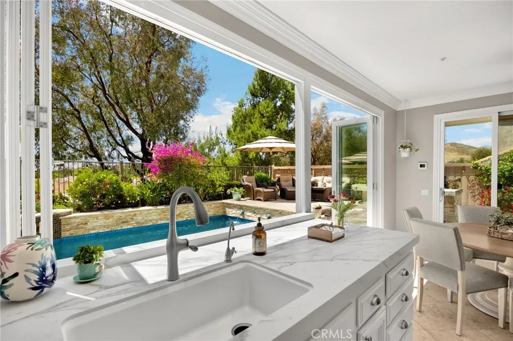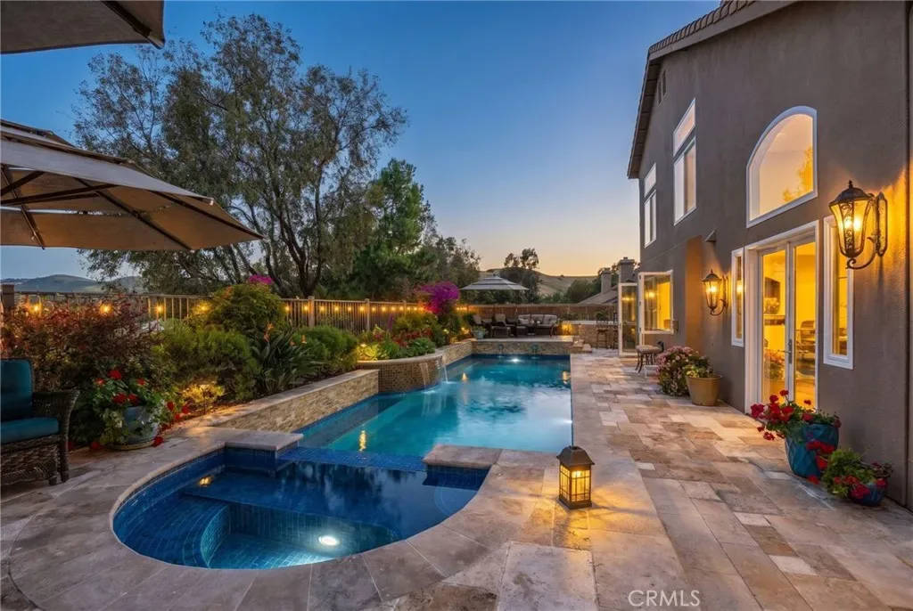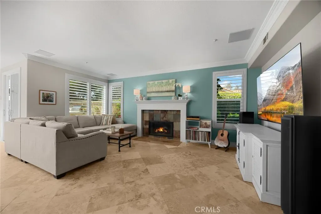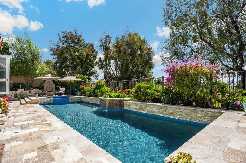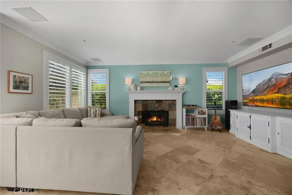 A rare find at the private end of a cul-de-sac, this beautifully upgraded 4-bedroom+office, 3 bath, 3317 sq ft coastal residence captures the essence of elevated San Clemente living. A very open, light-filled floor plan is enhanced by luxury vinyl flooring, custom shutters, vinyl windows, designer selected paint, crown moulding, and a fully prepaid solar lease-combining style, comfort, and efficiency. The entry opens to soaring vaulted ceilings and an elegant, updated fireplace in the living room, where natural light pours through large windows and flows into the dining room. French doors frame the resort backyard and sweeping views, bringing in ocean breezes and a bright, airy coastal ambience. The family room continues the open concept with travertine floors, a second updated fireplace, and a seamless connection to the kitchen. The chef’s kitchen is a true coastal showpiece with porcelain countertops on all surfaces, herringbone marble backsplash. Viking professional range, Thermador convection oven+warming drawer, Sub-zero refrigerator, Bosch dishwasher, RO water system under the kitchen sink, and a walk-in pantry. A dramatic bi-fold window, and bi-fold doors open the entire kitchen and breakfast area to the pool, panoramic views. A downstairs office/optional bedroom, full upgraded bath, and laundry room with sink. The primary suite offers vinyl flooring, crown moulding, custom shutters, walk-in closet, and a zen retreat area with fireplace. The spa-inspired bath features a stand-alone soaking tub, quartz counters, dual sinks. Secondary bedrooms feature vinyl flooring, mirrored doors, shutters. Step outside to your private resort backyard, where sweeping views and total privacy create a serene coastal escape. Enjoy a Revco solar-heated, salt-water PebbleTec lap pool with spa and waterfalls, enhanced by night lighting, an outdoor fireplace, a BBQ grill with generous seating, an elevated view lounge, and an outdoor dining terrace surrounded by lush landscaping. The 3-car garage is fully finished with epoxy flooring, built-in cabinets, and a Wen clean air system, offering a pristine space. Minutes from beaches, coastal trails, boutique shopping, dining, and top-rated schools, this home delivers the bright, open, private coastal lifestyle that defines San Clemente. This property is Stunning!
