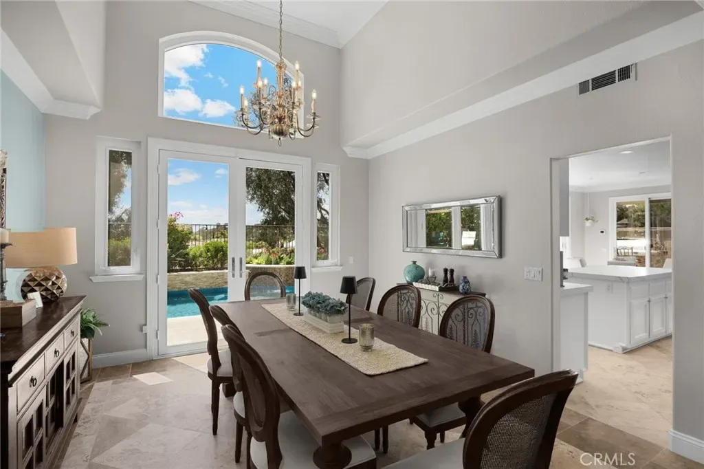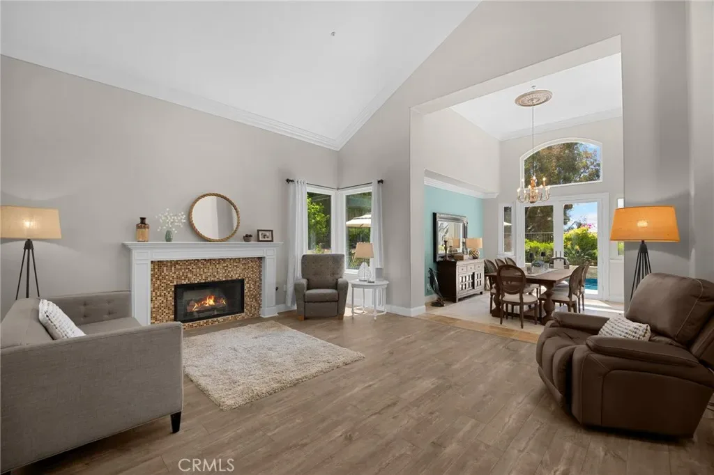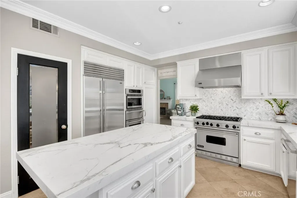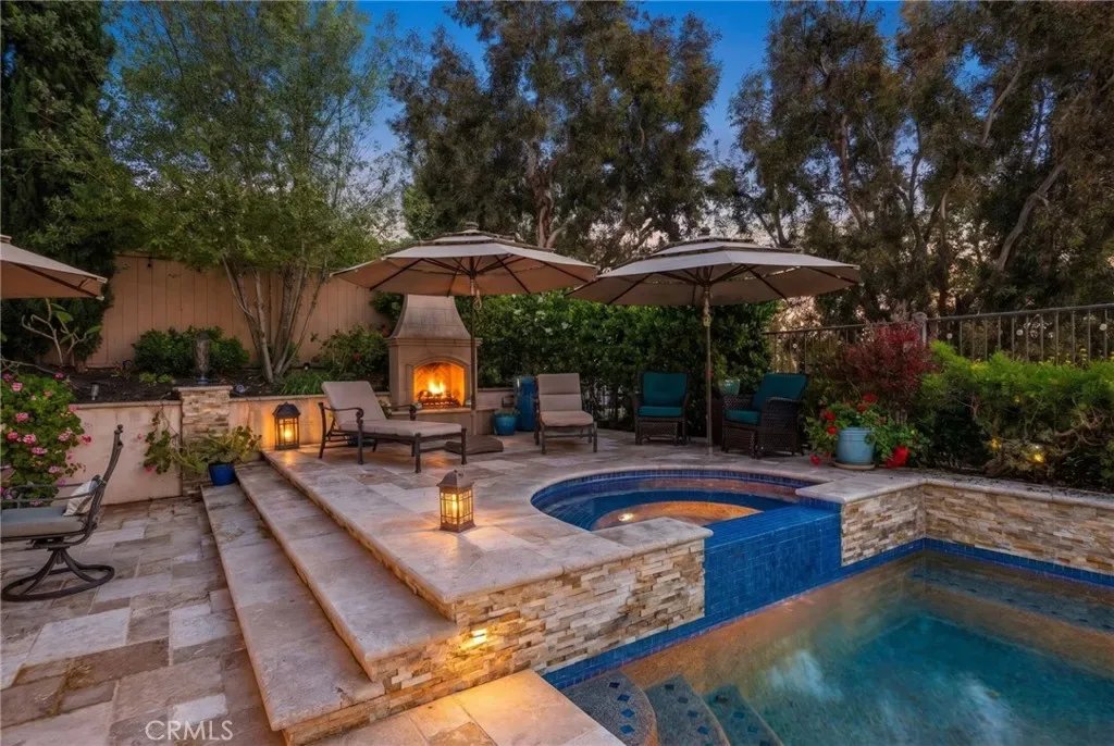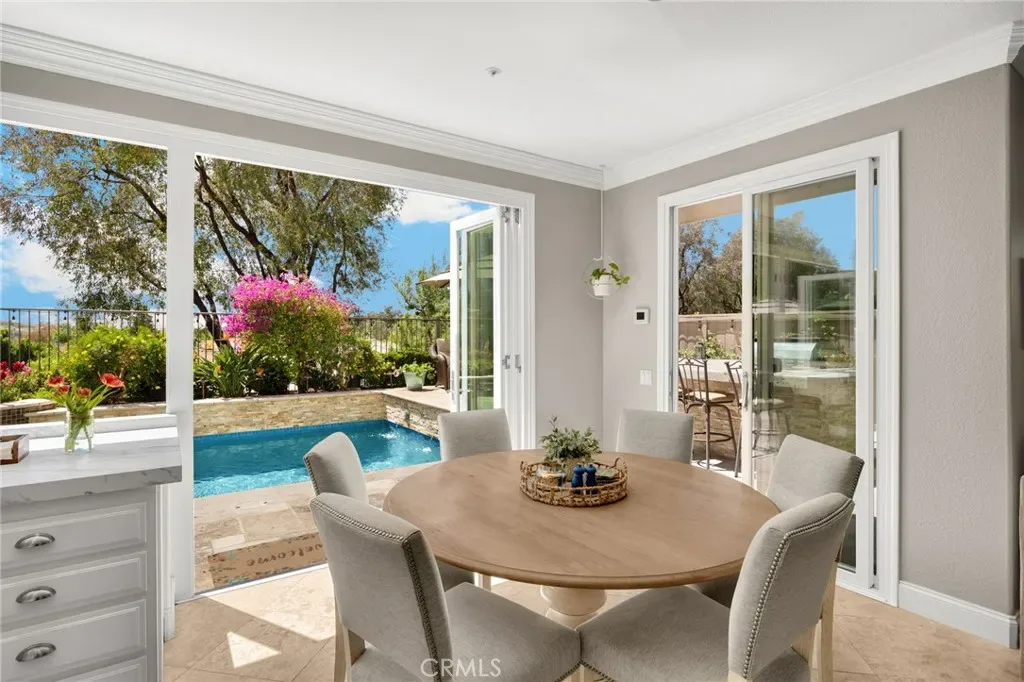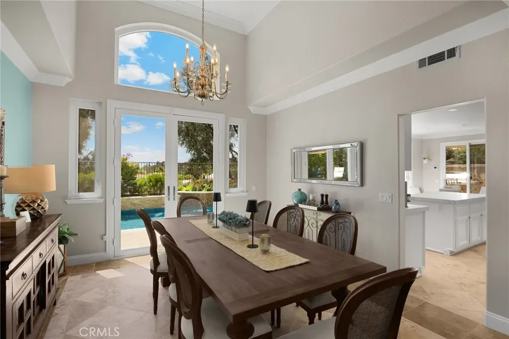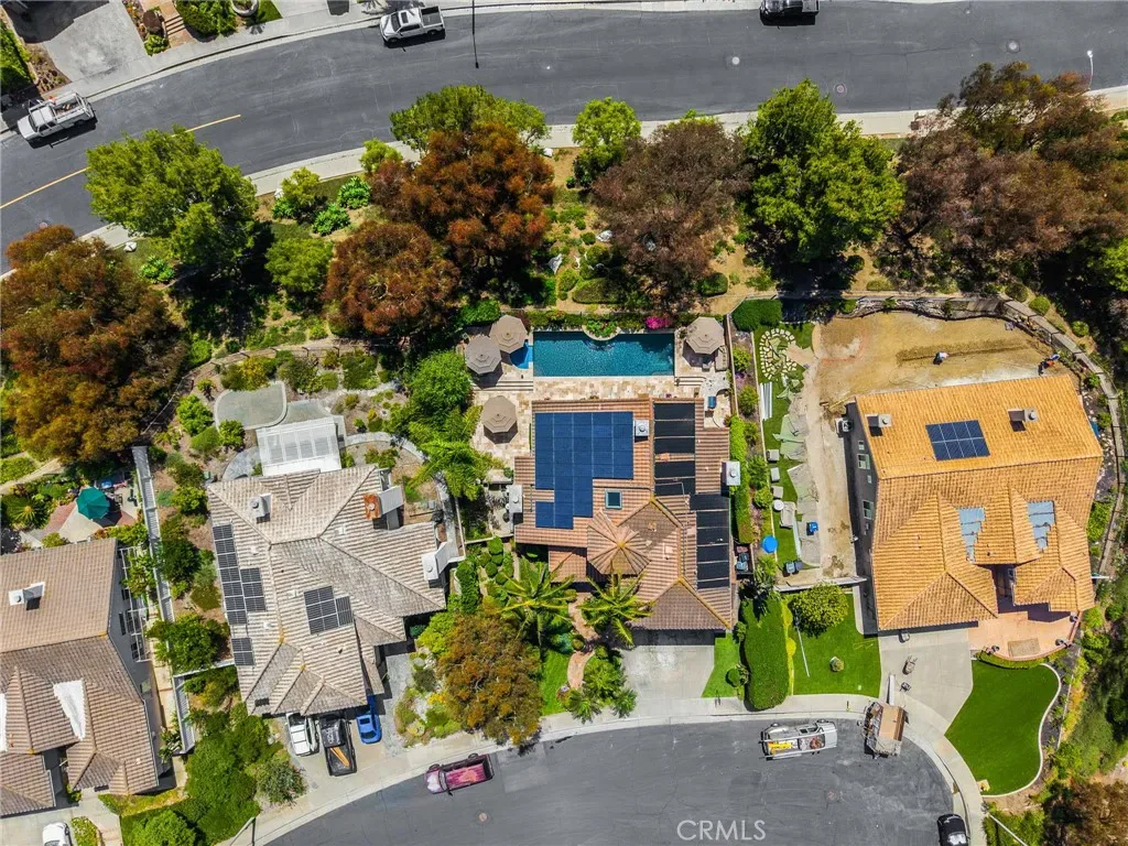 A rare find at the private end of a cul-de-sac, this beautifully upgraded 4-bedroom+office, 3 bath, 3317 sq ft coastal residence captures the essence of elevated San Clemente living. A very open, light-filled floor plan is enhanced by luxury vinyl flooring, custom shutters, vinyl windows, designer selected paint, crown moulding, and a fully prepaid solar lease-combining style, comfort, and efficiency. The entry opens to soaring vaulted ceilings and an elegant, updated fireplace in the living room, where natural light pours through large windows and flows into the dining room. French doors frame the resort backyard and sweeping views, bringing in ocean breezes and a bright, airy coastal ambience. The family room continues the open concept with travertine floors, a second updated fireplace, and a seamless connection to the kitchen. The chef’s kitchen is a true coastal showpiece with porcelain countertops on all surfaces, herringbone marble backsplash. Viking professional range, Thermador convection oven+warming drawer, Sub-zero refrigerator, Bosch dishwasher, RO water system under the kitchen sink, and a walk-in pantry. A dramatic bi-fold window, and bi-fold doors open the entire kitchen and breakfast area to the pool, panoramic views. A downstairs office/optional bedroom, full upgraded bath, and laundry room with sink. The primary suite offers vinyl flooring, crown moulding, custom shutters, walk-in closet, and a zen retreat area with fireplace. The spa-inspired bath features a stand-alone soaking tub, quartz counters, dual sinks. Secondary bedrooms feature vinyl flooring, mirrored doors, shutters. Step outside to your private resort backyard, where sweeping views and total privacy create a serene coastal escape. Enjoy a Revco solar-heated, salt-water PebbleTec lap pool with spa and waterfalls, enhanced by night lighting, an outdoor fireplace, a BBQ grill with generous seating, an elevated view lounge, and an outdoor dining terrace surrounded by lush landscaping. The 3-car garage is fully finished with epoxy flooring, built-in cabinets, and a Wen clean air system, offering a pristine space. Minutes from beaches, coastal trails, boutique shopping, dining, and top-rated schools, this home delivers the bright, open, private coastal lifestyle that defines San Clemente. This property is Stunning!