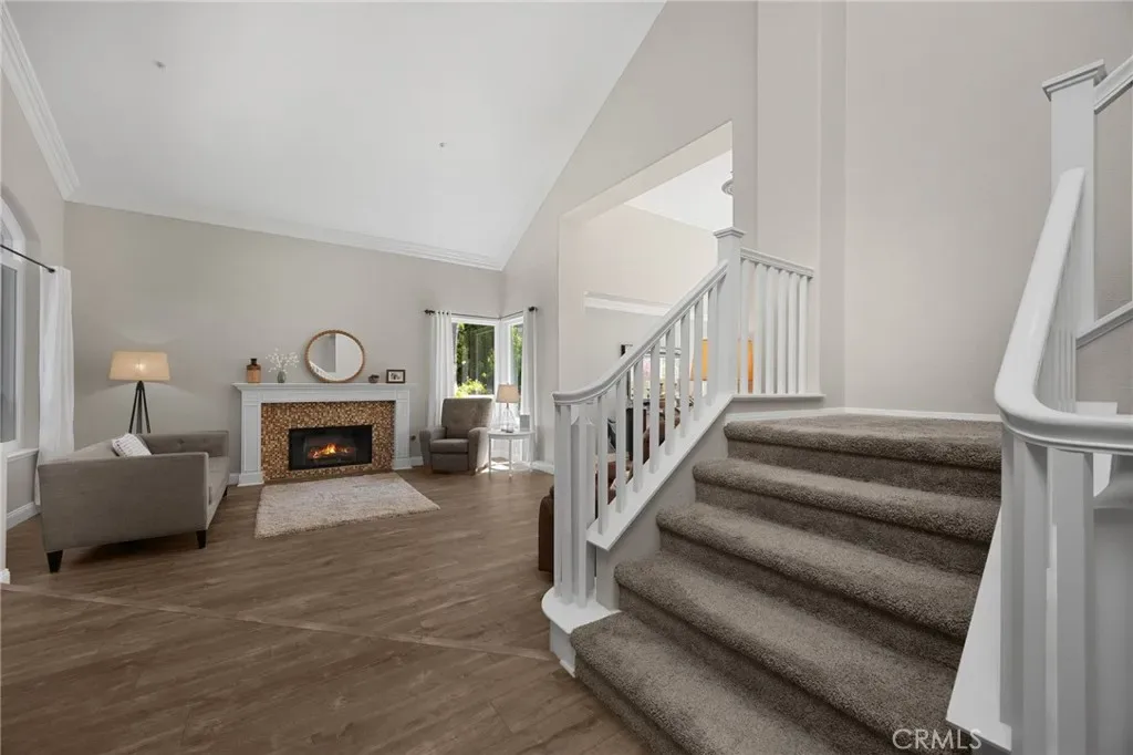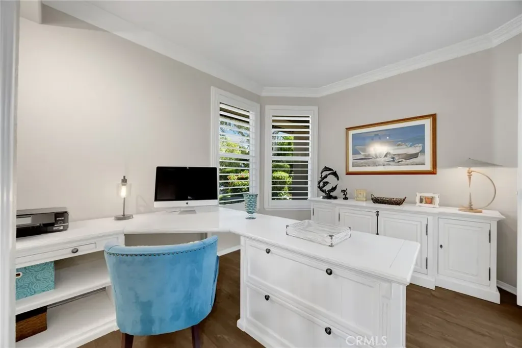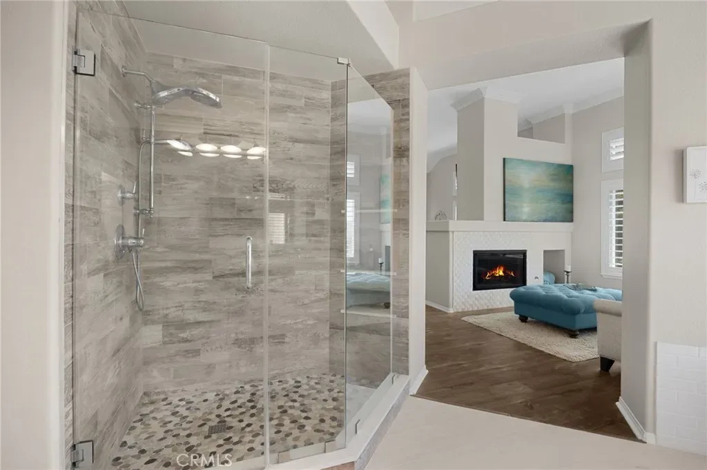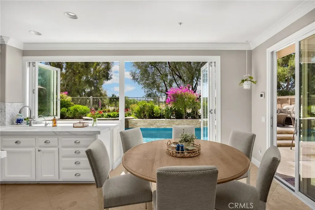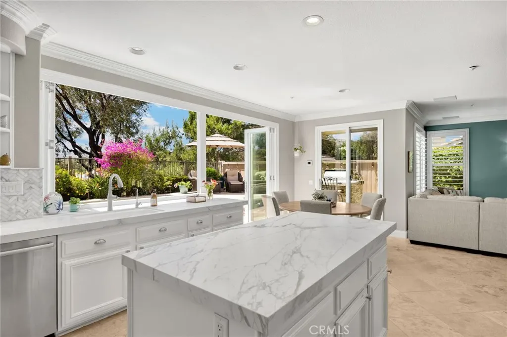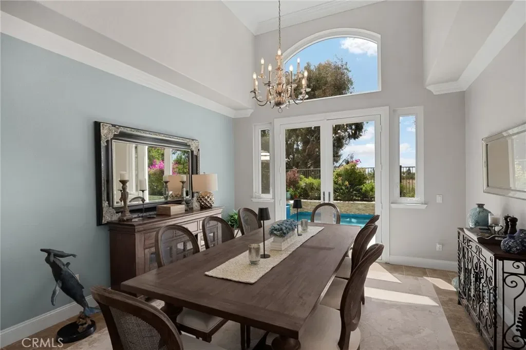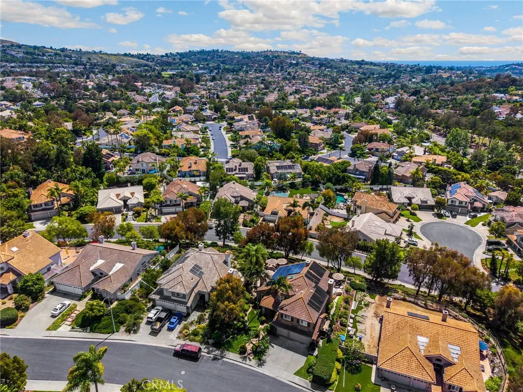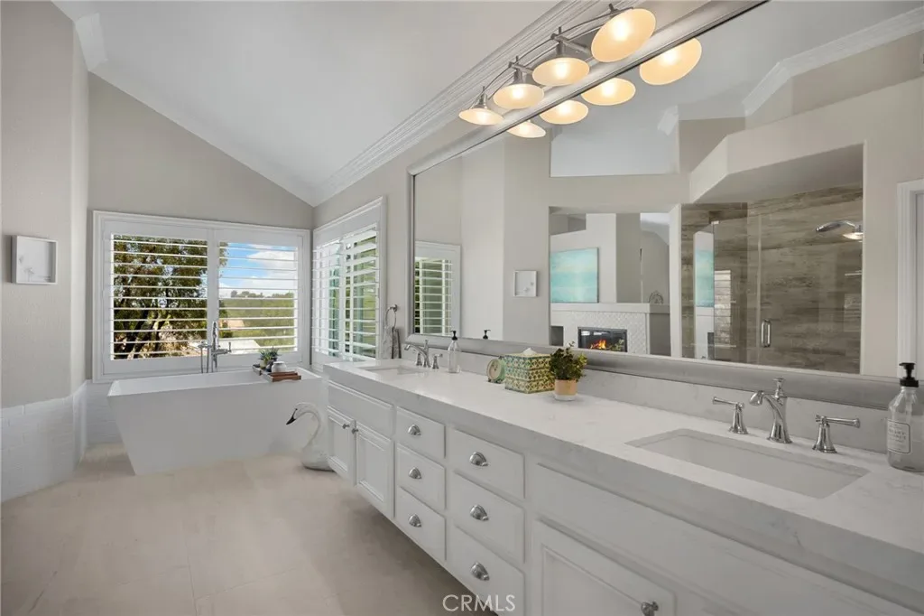 A rare find at the private end of a cul-de-sac, this beautifully upgraded 4-bedroom+office, 3 bath, 3317 sq ft coastal residence captures the essence of elevated San Clemente living. A very open, light-filled floor plan is enhanced by luxury vinyl flooring, custom shutters, vinyl windows, designer selected paint, crown moulding, and a fully prepaid solar lease-combining style, comfort, and efficiency. The entry opens to soaring vaulted ceilings and an elegant, updated fireplace in the living room, where natural light pours through large windows and flows into the dining room. French doors frame the resort backyard and sweeping views, bringing in ocean breezes and a bright, airy coastal ambience. The family room continues the open concept with travertine floors, a second updated fireplace, and a seamless connection to the kitchen. The chef’s kitchen is a true coastal showpiece with porcelain countertops on all surfaces, herringbone marble backsplash. Viking professional range, Thermador convection oven+warming drawer, Sub-zero refrigerator, Bosch dishwasher, RO water system under the kitchen sink, and a walk-in pantry. A dramatic bi-fold window, and bi-fold doors open the entire kitchen and breakfast area to the pool, panoramic views. A downstairs office/optional bedroom, full upgraded bath, and laundry room with sink. The primary suite offers vinyl flooring, crown moulding, custom shutters, walk-in closet, and a zen retreat area with fireplace. The spa-inspired bath features a stand-alone soaking tub, quartz counters, dual sinks. Secondary bedrooms feature vinyl flooring, mirrored doors, shutters. Step outside to your private resort backyard, where sweeping views and total privacy create a serene coastal escape. Enjoy a Revco solar-heated, salt-water PebbleTec lap pool with spa and waterfalls, enhanced by night lighting, an outdoor fireplace, a BBQ grill with generous seating, an elevated view lounge, and an outdoor dining terrace surrounded by lush landscaping. The 3-car garage is fully finished with epoxy flooring, built-in cabinets, and a Wen clean air system, offering a pristine space. Minutes from beaches, coastal trails, boutique shopping, dining, and top-rated schools, this home delivers the bright, open, private coastal lifestyle that defines San Clemente. This property is Stunning!