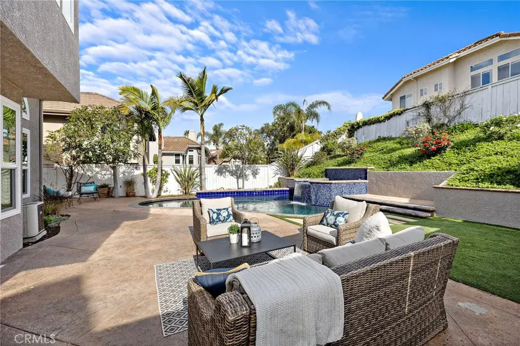 Welcome to this beautifully upgraded 4-bedroom, 2.5-bath home with a 3-car garage, ideally located in the highly desirable Forster Ranch community. Thoughtfully updated throughout, this move-in-ready home features dual A/C systems, new windows & sliders, fresh interior and exterior paint, recessed lighting, and new ceiling fans. The open-concept kitchen is the heart of the home, showcasing stunning Taj Mahal quartzite countertops, upgraded appliances, an extended breakfast bar for additional seating, and seamless flow into the family room—perfect for everyday living and entertaining. The third-car garage has been thoughtfully converted into a flexible bonus room—perfect for an office, playroom, hangout space, or guest area. All bathrooms have been beautifully remodeled, with the spacious primary suite offering a luxurious soaking tub and separate glass-enclosed shower. Custom closet built-ins add both style and functionality. Step outside to your private backyard oasis, complete with a sparkling pool, spa, and waterfall feature, plus ample space for entertaining. The large gated front yard is ideal for gardening or relaxing in the sun. Additional upgrades include a remodeled fireplace, new vinyl gate, full home repipe in 2022. The washer, dryer, and refrigerator are included. Enjoy an unbeatable location with greenbelt access just steps away, walking distance to Truman Benedict Elementary, Bernice Ayer Middle School, Pirate Park, and two lighted pickleball courts. Just one mile from the beach and less than a mile to the San Clemente Outlets—this home truly offers the best of coastal living. Don’t miss this rare opportunity to own a turnkey home in one of San Clemente’s most sought-after neighborhoods.