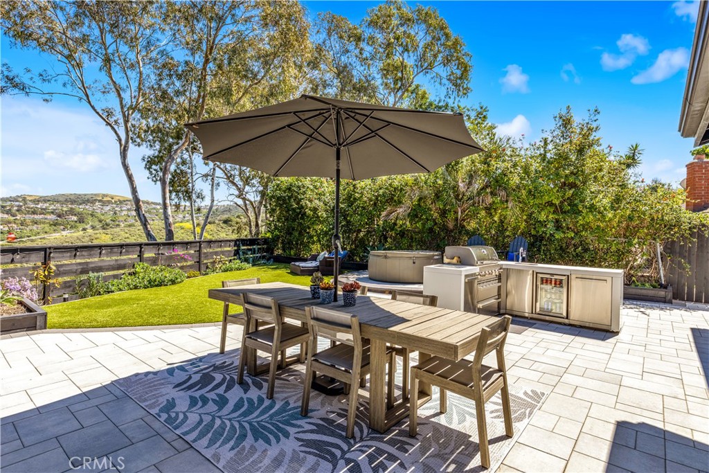 Welcome to your dream single-level mid-century home with a 70’s twist—where style, space, and that unmistakable “let’s have a martini (or mocktail) at sunset” vibe all come together. Set on an expansive 10,065 sq ft lot (rare for the area) this 3 bedroom, 2.5 bathroom home offers approximately 1,951 sq ft of thoughtfully curated living space, all wrapped in effortless coastal energy in one of San Clemente’s most desirable areas. Inside, wide plank wood flooring in a soft, beach-inspired finish grounds the space, while curated updates throughout bring a sense of cohesion and ease. The kitchen pairs crisp white cabinetry with solid slab dark stone countertops and a stainless steel appliance suite—both functional and visually striking. Entertaining is elevated here. Designed for both everyday living and entertaining, the oversized dining room is made for dinner parties, while the dedicated bar/lounge room – complete with a plumbed bar and a stunning pitched wood-beamed ceiling – sets the stage for relaxed evenings and unforgettable gatherings. The living room makes a statement of its own, centered around a bold black lava rock fireplace with a custom distressed wood mantle. The primary suite offers a quiet sense of luxury, complete with dual closets, scenic views, and a beautifully remodeled ensuite featuring a soaking tub, step-in shower, and dual vanity. Two additional bedrooms are well-proportioned and share an updated dual-sink hall bath, while a separate powder room adds convenience rarely found in homes of this size. Thoughtful upgrades include new dual-pane windows, a fully updated HVAC system with new ducting and attic insulation, and custom window coverings throughout. Step outside and experience the ultimate backyard setup – complete with new turf and pavers, a pergola with fire table, BBQ bar, spa, and updated fencing with new gates. An outdoor shower adds the perfect coastal touch – ideal for rinsing off after a beach day or surf session. Even the front yard is engaging, with lush landscaping, fruit trees, and a charming seating area under a pergola. With no HOA or Mello Roos, coastal breezes, canyon and Saddleback mountain views, and a location just minutes from the beach and the iconic downtown San Clemente scene, this is more than a home – it’s a lifestyle.