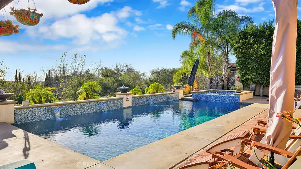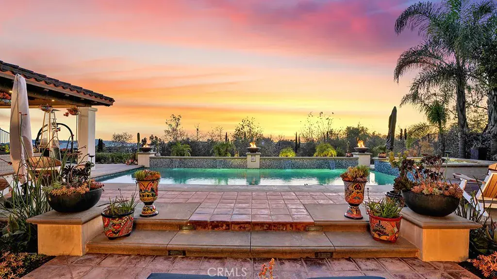 RESORT-STYLE ENTERTAINER’S RETREAT IN TALEGA’S PRESTIGIOUS LUCIA / ALTURA TRACT. Perched at the pinnacle of Talega, 13 Calle Viviana presents a rare opportunity within the gated Lucia Altura enclave—home to only 20 residences and renowned for its commanding hillside and ocean-view trophy lots. Offering exceptional privacy and breathtaking vistas, this 5-bedroom, 5.5-bath residence spans approximately 5,136 sq ft on an 11,230 sq ft lot and feels truly custom in scale and design. The gated courtyard entry welcomes you with a tranquil water feature, outdoor seating area, and expansive grassy side yard. A full-suite casita sits to the left, while a detached third-car garage enhances functionality and privacy. Within the main residence, hardwood floors, graceful arches, crown molding, and custom built-ins define the home’s refined character. The main level is designed for effortless entertaining, featuring a formal living room with fireplace opening to the courtyard, a formal dining room, curated wine display, and a light-filled family room that flows seamlessly into the kitchen. The chef’s kitchen showcases white cabinetry, quartz countertops, a designer tile backsplash, walk-in pantry, dedicated coffee station, and premium KitchenAid appliances. Completing the lower level are a private ensuite bedroom, executive office, powder bath, and direct access to the two-car garage. Upstairs, plush white carpeting leads to two spacious ensuite bedrooms, a versatile loft, and an impressive primary suite. The primary retreat offers custom built-ins, a sitting area, walk-in closet, and private balcony featuring ocean, hills and sunset views. The spa-inspired primary bath presents dual quartz vanities, a stand-alone soaking tub, and walk-in shower. Accordion-style doors open to a panoramic backyard oasis featuring a resort-style pool and spa, built-in BBQ, and a Spanish-style loggia with exposed wood beams and an outdoor fireplace—an extraordinary setting to relax, entertain, and take in some of Talega’s most breathtaking views.