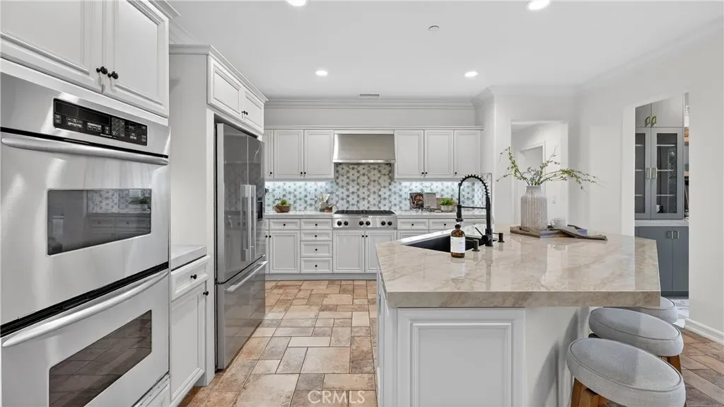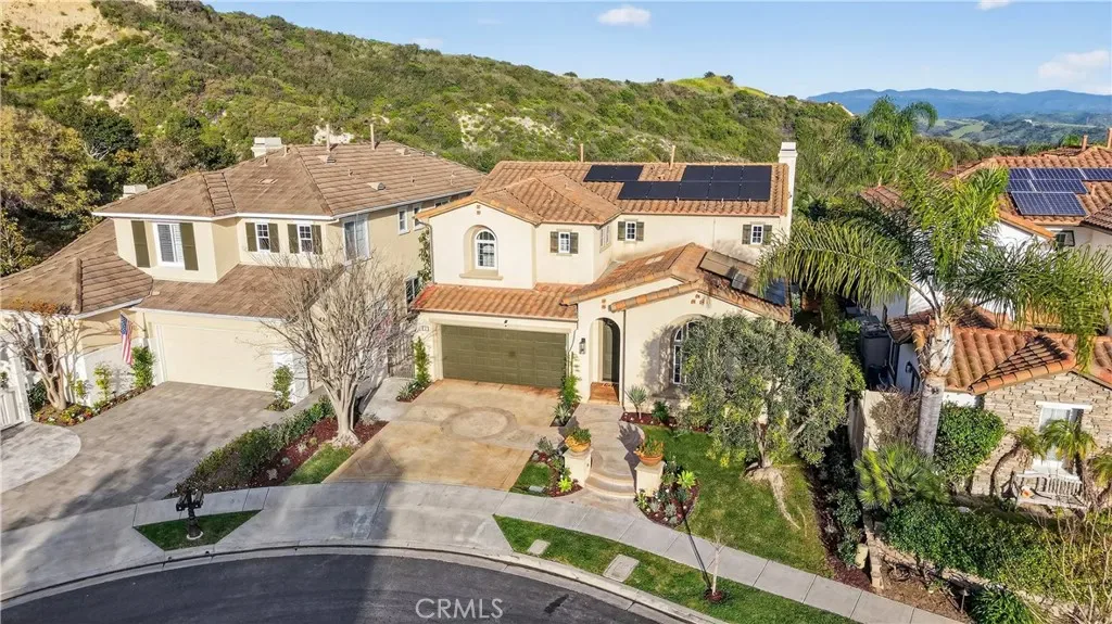 Welcome to 4 Via Belleza, an exceptional coastal retreat nestled in the rolling hills of San Clemente. Located on one of the highest streets in Talega, this beautifully appointed residence offers the perfect blend of privacy, elegance, and Southern California lifestyle. Surrounded by pristine natural open space and scenic walking trails, the property enjoys a peaceful, tucked-away setting where coastal breezes, canyon views, and the sounds of nature create a true sense of retreat. Step outside your door and explore miles of nearby trails – perfect for morning walks, trail runs, or simply soaking in the beauty of the surrounding landscape. Inside, you’ll discover a light-filled interior with soaring ceilings, expansive windows, and an open-concept floor plan designed for both comfortable living and effortless entertaining. The spacious living areas flow seamlessly into a gourmet kitchen featuring stainless steel appliances, a large walk-in pantry, generous counter space with new quartzite counters, a large center island, and a newly designed bar area perfect for entertaining. A bedroom ideal for guests, and a large three car tandem garage with plenty of storage complete the downstairs. Incredible hills and canyon views are showcased from the upstairs primary suite and viewing balcony. This luxurious primary suite serves as a private sanctuary, complete with a spa-inspired bath, dual vanities, soaking tub, and two spacious walk-in closets. The flex space attached to the primary suite is ideal for an office, nursery or home gym. Two additional secondary bedrooms and a beautifully designed secondary bath complete the upstairs. The backyard serves as a very private retreat with no homes behind and has been thoughtfully landscaped with ample patio space for dining al fresco around the built-in BBQ island, relaxing by the built-in fire pit, or simply enjoying the serene natural surroundings. Talega offers top-rated schools with fantastic neighborhood amenities including resort pools, sport courts, parks, tot-lots and community events. With no shortage of nearby green space, 4 Via Belleza offers rare privacy while still being minutes from everyday conveniences, downtown shopping and San Clemente’s top-rated beaches.
