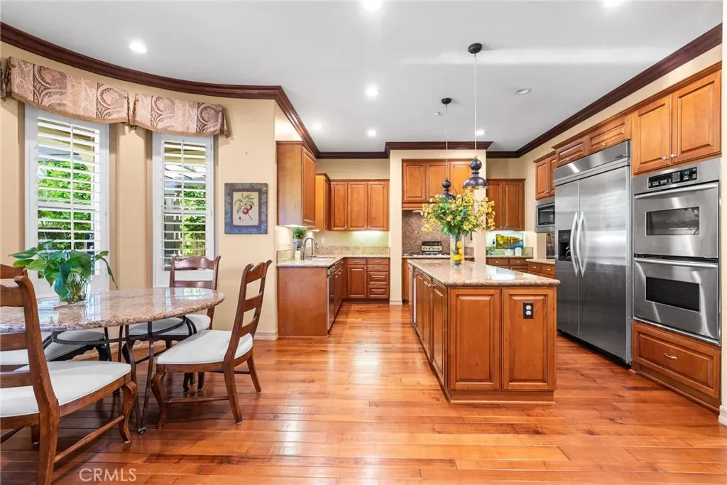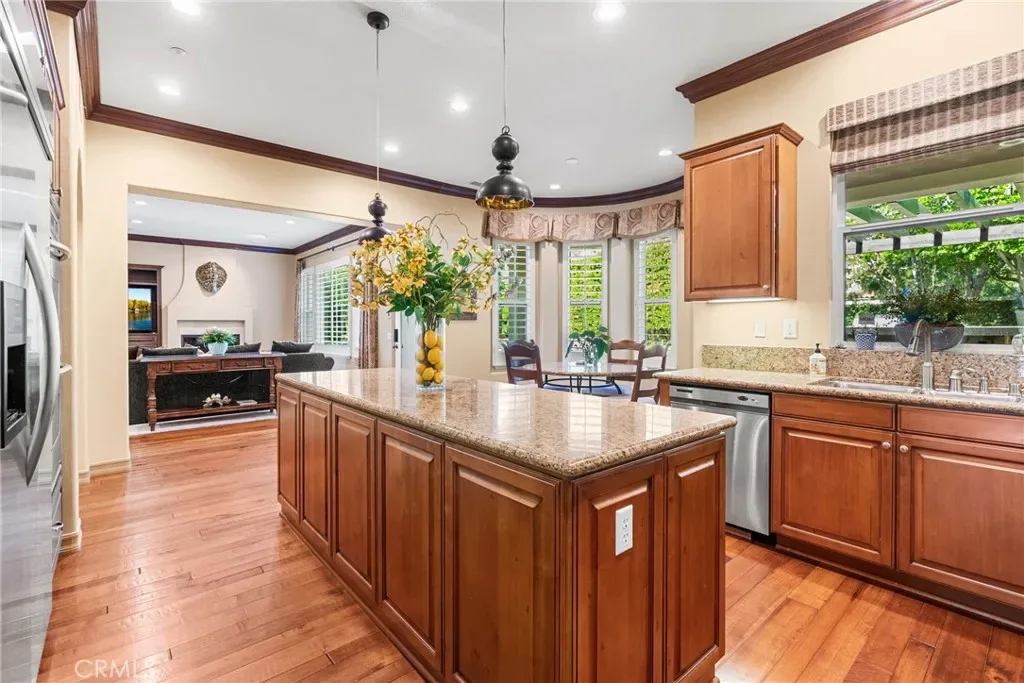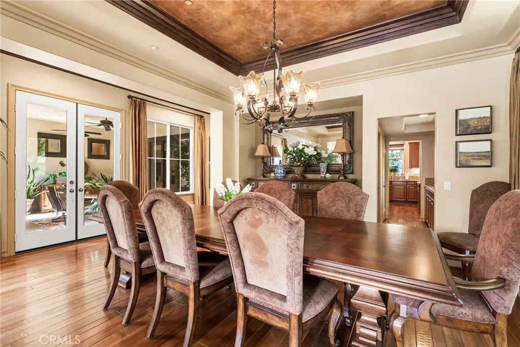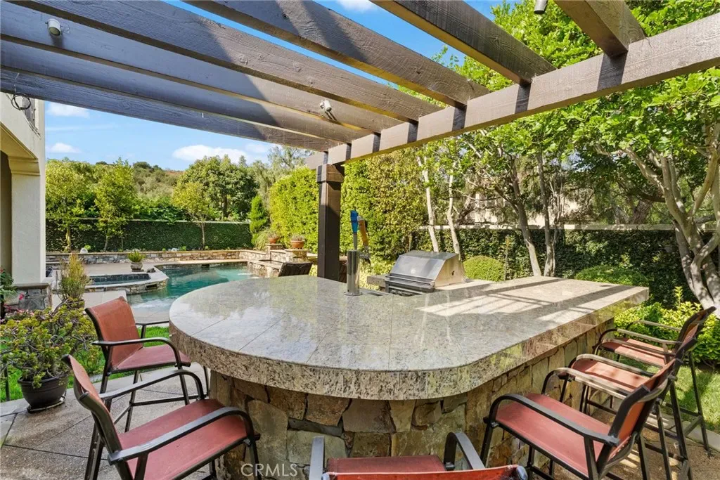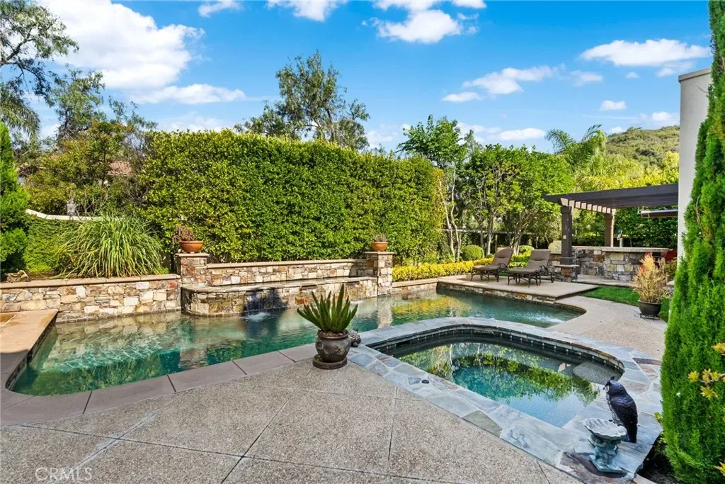 This exceptional residence offers an ideal setting for both sophisticated entertaining and refined everyday living. The backyard is designed as a true entertainer’s retreat, showcasing a resort-style saltwater Pebble Tec pool and spa, an expansive stacked-stone and granite BBQ island with seating for eight or more, dual overhead televisions, a kegerator, and a built-in gas heater. Evenings can be enjoyed around the inviting fire pit or beneath the covered patio loggia, perfect for year-round gatherings. Located on a quiet cul-de-sac, this home represents one of the most desirable floor plans within the Montellano Tract and is enhanced by meticulously maintained landscaping. Additional outdoor features include a charming front courtyard with a fountain and a covered loggia appointed with a double-sided fireplace. The interior offers five en-suite bedrooms, including one currently utilized as an office with access to a spacious exterior view deck. A generous loft provides an excellent flex space for a teen lounge or game room. The primary suite includes a sitting area and a private view deck, while the spa-inspired bath is highlighted by a custom glass-enclosed shower. The formal entry is framed with French doors, and the living and dining rooms feature elegant coffered ceilings. The chef’s kitchen is appointed with granite countertops, a center island, a butler’s pantry, stainless steel appliances, and soft-closing cabinetry. The open-concept family room offers a fireplace, a built-in entertainment center, and serene views of the pool. Additional highlights include solar, a three-car tandem garage with built-in storage, a custom Italian wood garage door with iron-forged hardware, and numerous premium upgrades throughout. Residents enjoy access to the Talega lifestyle, offering top-rated schools, scenic trails, pools, golf, and a wide range of exceptional community amenities.