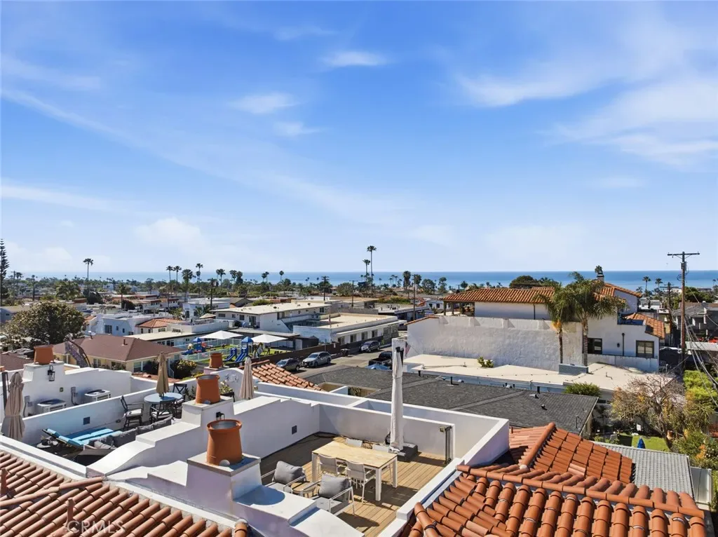 Take advantage of this rare opportunity to own a 2020 constructed condo in the heart of downtown San Clemente. Located within the highly desirable short-term rental zone, this property offers exceptional income potential while also serving as a beautifully appointed personal residence. Ideally situated just a short walk to the San Clemente Pier and the shops and restaurants along Avenida Del Mar, this home delivers the ultimate coastal lifestyle. Completed by local builder CH Anderson Construction in collaboration with architect Michael Luna, the residence showcases timeless Spanish architecture paired with high-quality craftsmanship. From the elegant archways and custom tile to the wrought iron details and thoughtfully designed windows, every element reflects the charm of San Clemente’s “Spanish Village by the Sea.” Unit C, the largest of the three residences at 1,929 square feet, offers a versatile and well-designed floor plan with high ceilings throughout. The open-concept kitchen flows seamlessly into the living and dining areas, creating an ideal space for entertaining, with a balcony just off the dining area for indoor-outdoor enjoyment. The living room is highlighted by a stunning cathedral ceiling, enhancing the sense of space and natural light. The main level features two bedrooms and the primary suite is a true retreat—complete with a private balcony, walk-in closet, and a beautifully appointed ensuite bathroom featuring dual sinks, quartz countertops, and a walk-in shower. An additional lower-level room provides flexibility for a guest suite, office, or extra bedroom. Interior features include oak wood flooring, custom window coverings, a beautifully appointed kitchen with a Kohler farmhouse sink, stainless steel appliances, and a custom-tiled fireplace. The spacious private rooftop deck is a true standout—offering ocean and headland views, along with a built-in outdoor fireplace, making it perfect for entertaining or relaxing after a day at the beach. Additional features include a convenient outdoor surf shower and three designated underground parking spaces with plenty of storage. This is coastal living at its finest—blending location, luxury, and income potential into one exceptional offering.