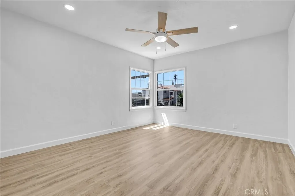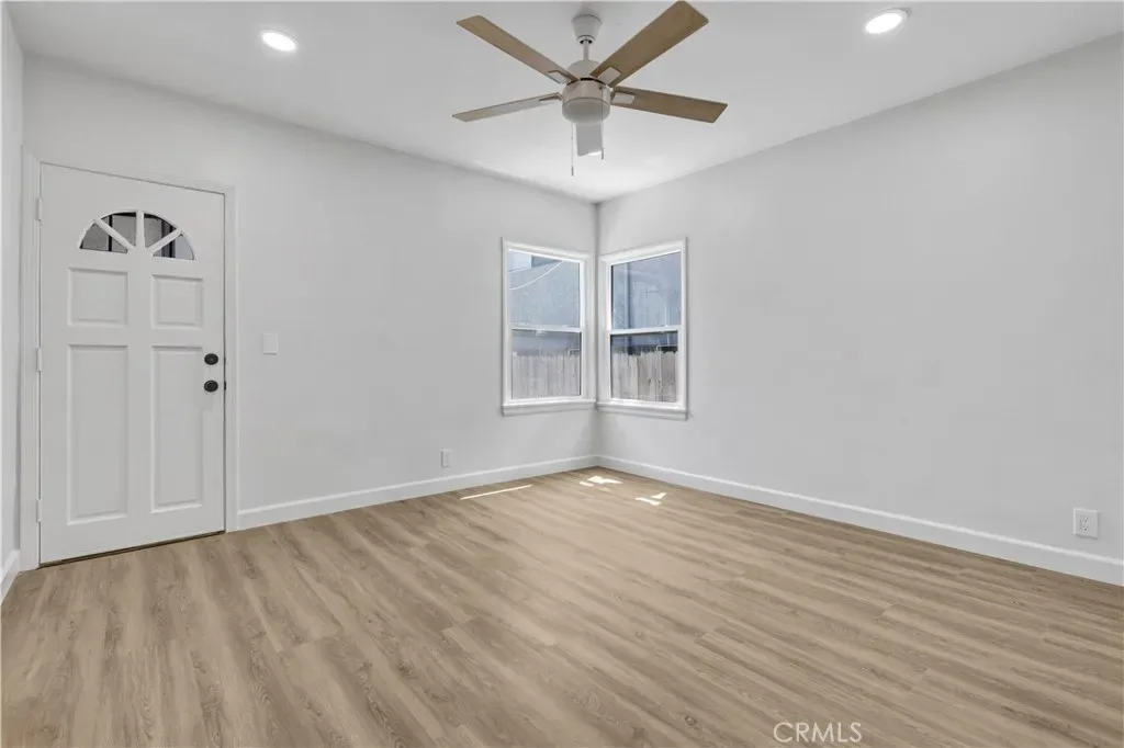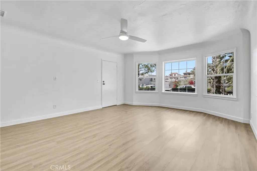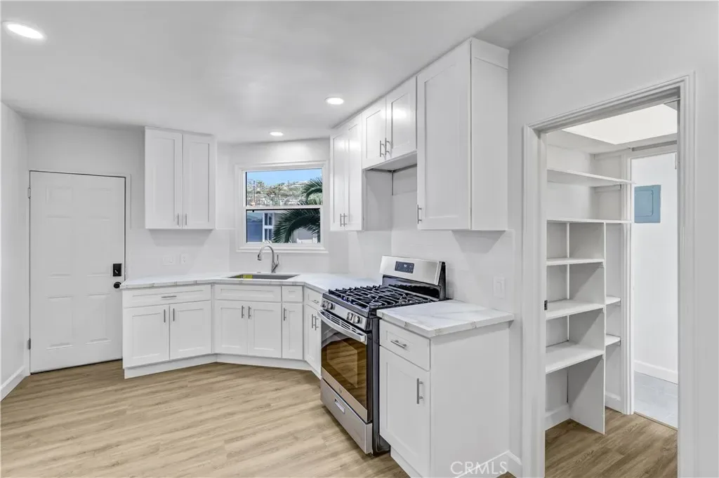 This ground-level, single-story unit offers effortless living with stylish luxury wood flooring throughout and a bright, updated kitchen featuring crisp white shaker cabinets and sleek quartz countertops. The remodeled bathroom and LED recessed lighting throughout add a clean, contemporary feel, while still preserving the home’s original charm.