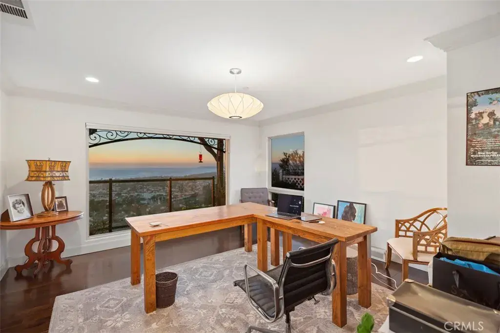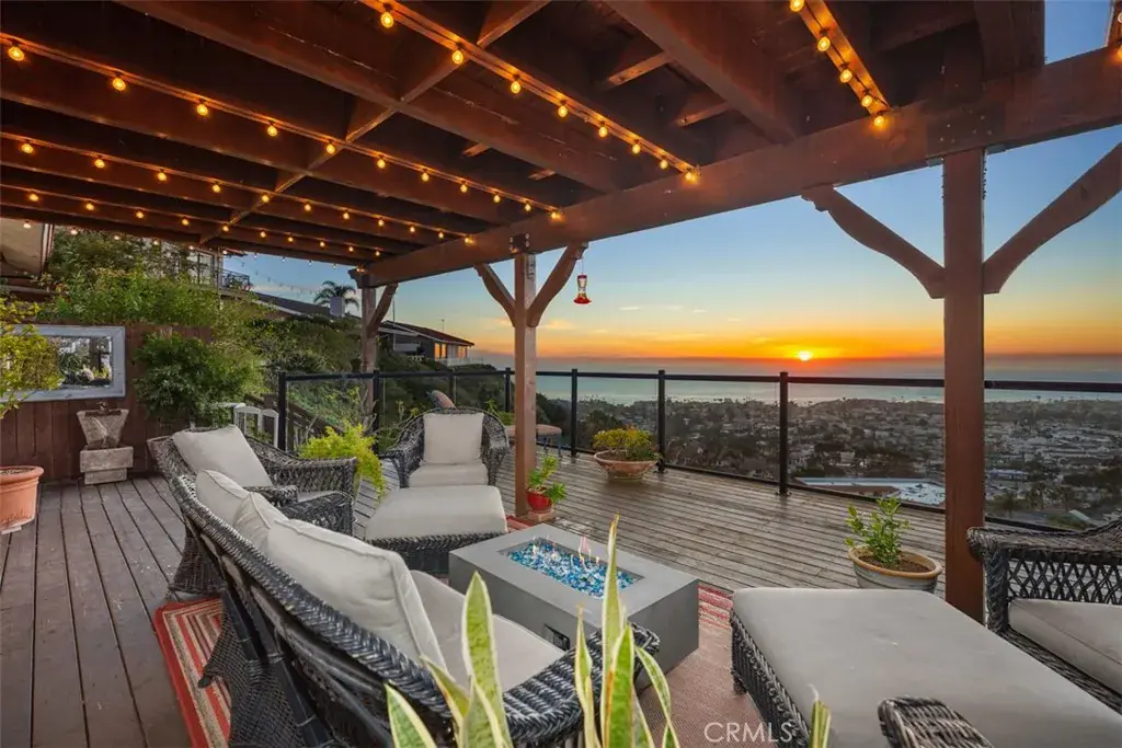 Spanish Revival Home on the Hill with Spectacular Ocean Views!!! This Luxurious Home offers Something for Everyone with Four Generously Sized Bedrooms, Multiple Privacy Decks and Views from Almost Every Room. Enter into the Private Courtyard and Bask in the Warmth of the Morning Sun. Cook and Dine in the Gourmet Kitchen which opens to the Formal Dining and Living Rooms with a Dual Sided Fireplace. Spectacular Sunsets are Revered from the Covered Deck with Outdoor Furniture to enjoy the Indoor/Outdoor Lifestyle of Southern California. The Primary Suite on the Upper Level has its own Private Viewing Deck, Fireplace and Remodeled Bath Complete Marble Counters, Custom Tiled Floors with Soaking Tub, Walk in Shower and Rooftop Deck. The Lower Level has its Own Entrance and offers a Private Abode. This Stunning Home has an Abundance of Features, all for the Discerning Appreciation of the Luxury Rental Market Clientele.