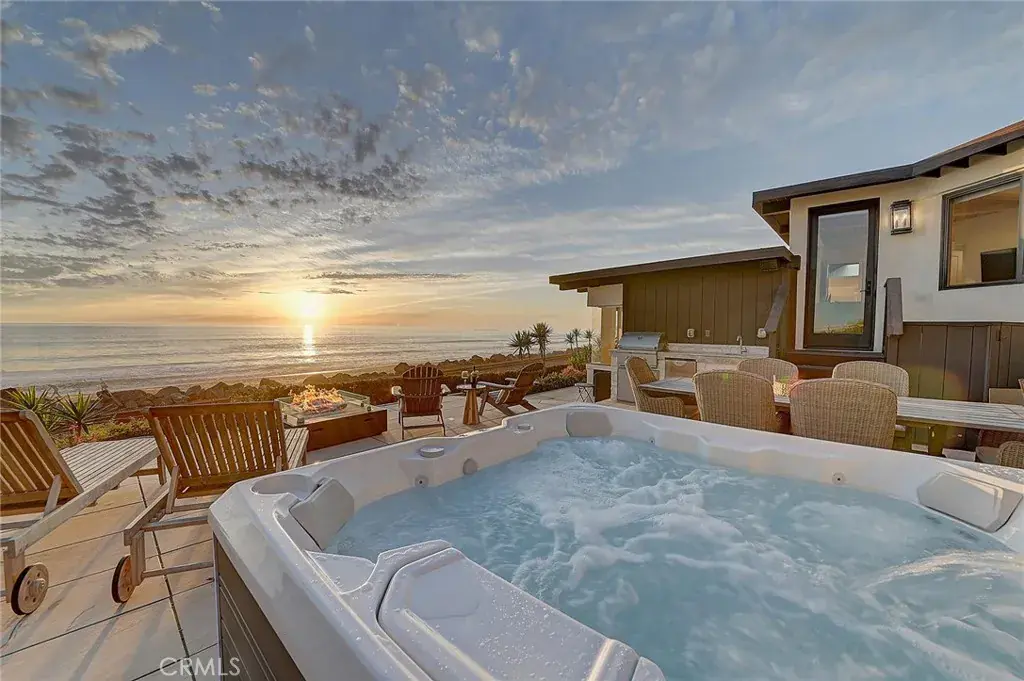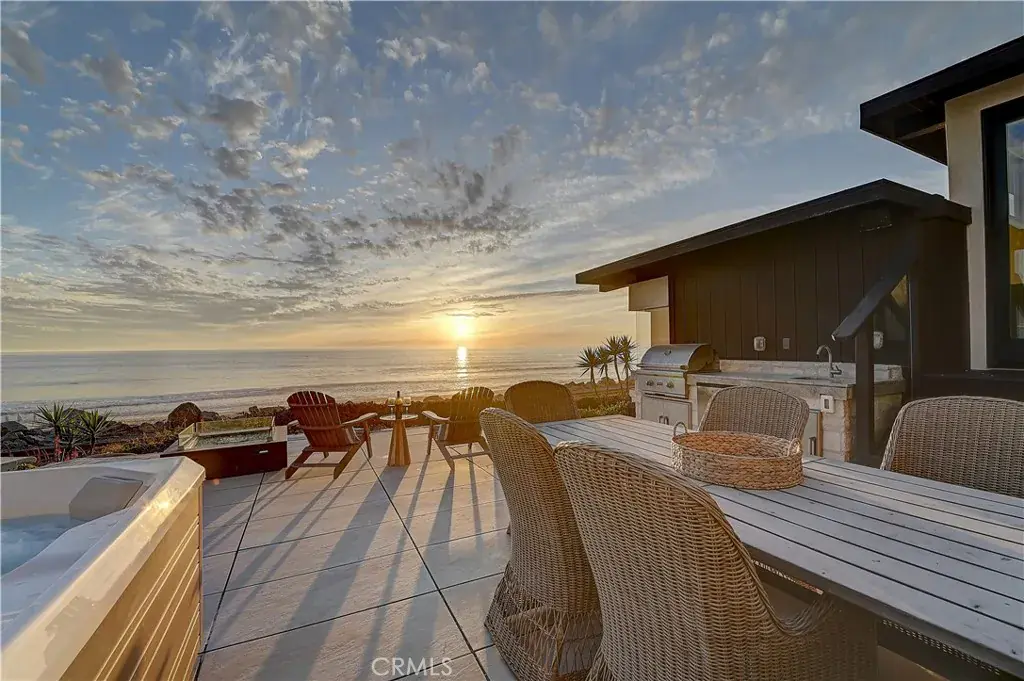 Escape to this stunning oceanfront retreat in San Clemente, FULLY FURNISHED and designed for ultimate relaxation and sophistication. Every room offers breathtaking views of the Pacific Ocean and Catalina Island, creating a backdrop of spectacular sunsets and coastal beauty. This 3 bedroom, 3 1/2 bath home’s luxurious amenities include top-of-the-line Thermador appliances, Wolfe Range, wine refrigerator, Calcutta marble countertops, and a great room with a Calcutta marble framed fireplace and La Cantina doors that open up to a wrap-around deck, patio with a private jacuzzi, built in BBQ with refrigerator and sink, and an inviting fire pit – all with a pristine front row view of the ocean and perfect for unforgettable evenings under the stars. The primary bedroom features ocean views, walk in closet, and a custom stained wood and Carrera marble bathroom. Additional features include French oak flooring, custom tile design in bathrooms, surround sound inside and outside, air conditioning, TV’s in all bedrooms and great room, and a separate laundry room. Experience everything San Clemente has to offer right outside your door! Exceptional surf, wide open beaches, beach volleyball, bike/running path, dine at the San Clemente pier or famed Del Mar Avenue. This exceptional property promises an unparalleled vacation experience where comfort, elegance, and ocean vistas meet. Rates Vary depending on season, inquire within.