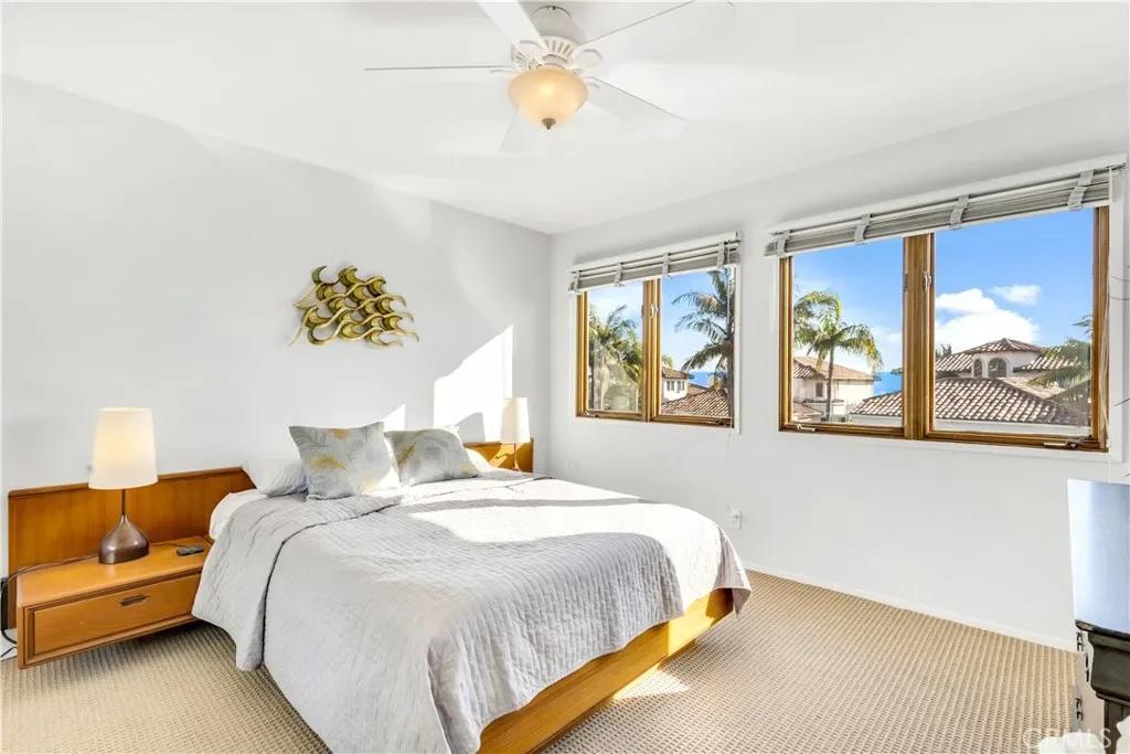 Available now, this fully furnished 3-bedroom residence offers nearly 3,000 sq ft of comfortable coastal living in the prestigious Palacio Del Mar community of San Clemente, where surrounding homes range from $2.5M to $3.5M. What sets this home apart is its exceptional size, versatile layout, and rare main-level primary suite – a combination seldom found in furnished rentals – along with ocean-view guest bedrooms and a private, usable backyard designed for relaxed indoor-outdoor living. The expansive floor plan includes generous living and entertaining spaces, soaring two-story ceilings in the family room, formal dining, and a well-equipped kitchen with center island, breakfast area, and adjacent work/desk nook. A dedicated wet bar adds convenience for hosting or extended stays. The main-level primary suite opens directly to the backyard and offers a spacious en-suite bath with soaking tub, walk-in shower, dual vanities, and private water closet. Upstairs, two oversized guest rooms enjoy elevated ocean views – one with a private deck – and share a full bath with dual vanity areas. Outdoors, the private backyard features a built-in BBQ, fire pit, covered patio, and grassy area, perfect for everyday enjoyment or casual entertaining. Ideally located in San Clemente’s coveted coastal hills, Palacio Del Mar offers quick freeway access and is just minutes to beaches, downtown, and the pier. Fully furnished and available for a MINIMUM 6 MONTH LEASE (longer term welcome), this home is well-suited for relocation, transitional housing, executive stays, or those seeking generous space and privacy in an established coastal neighborhood. Please note that this home does not have central air but it does have plenty of cool ocean breezes!